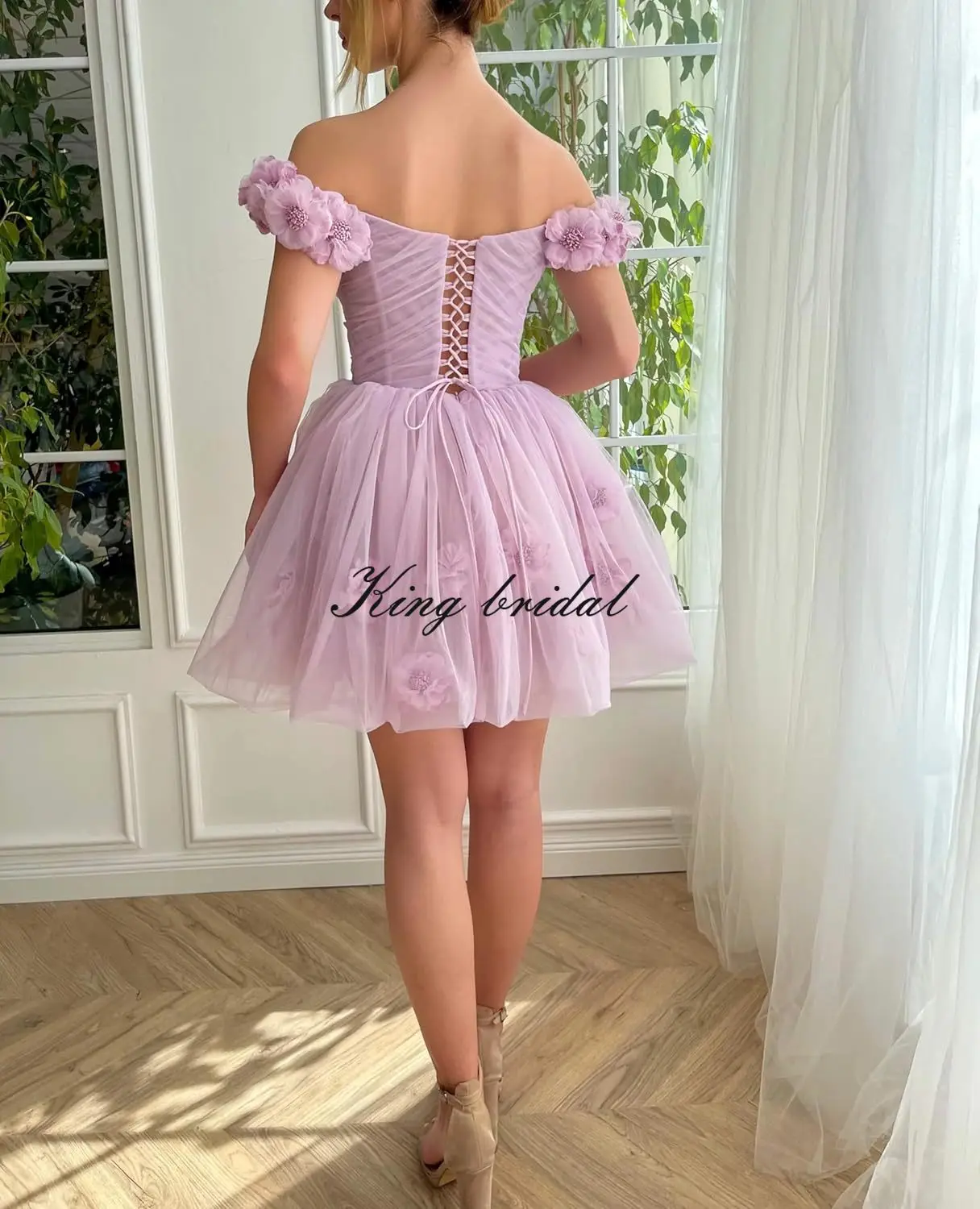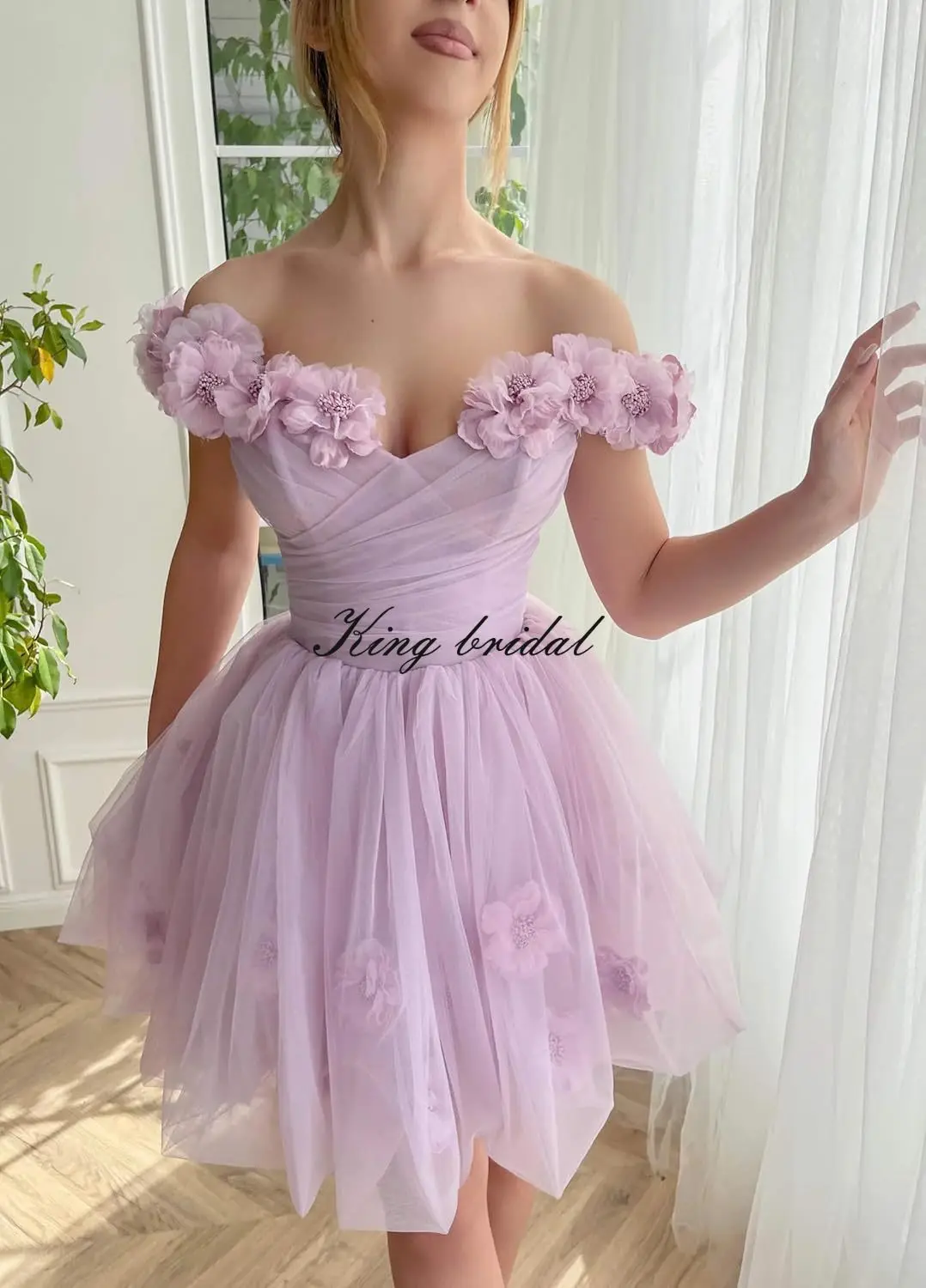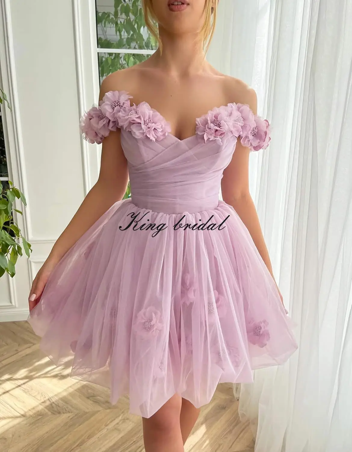 3D Blumen Tüll Mädchen Homecoming Kleider Kurz Off The Shoulder Fee Ballkleid Cocktail Hochzeit Party Kleider Brautjungfer Kleid