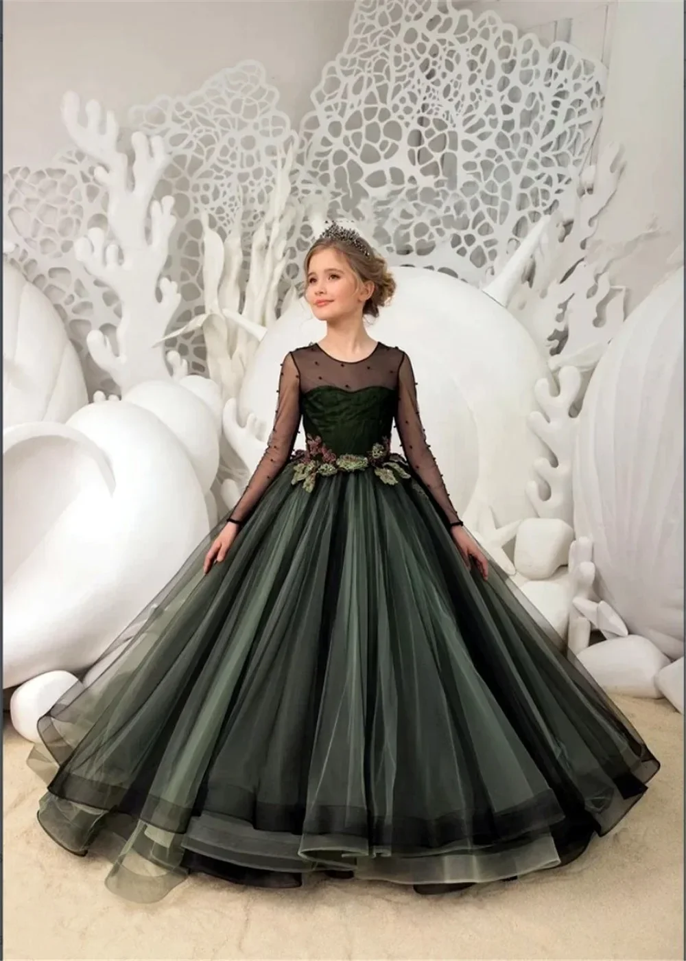 Baby-Mädchen-Ballkleid für Fotoshootings, Kleider für die Erstkommunion, Prinzessinnen-Blumenmädchenkleider für Hochzeiten, Spitzenapplikationen, bodenlang