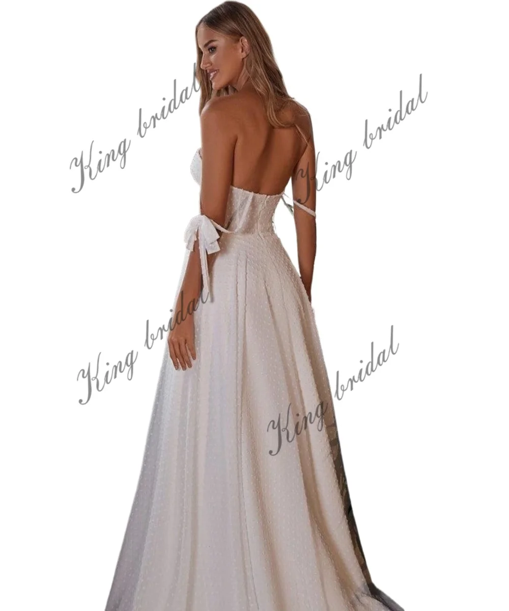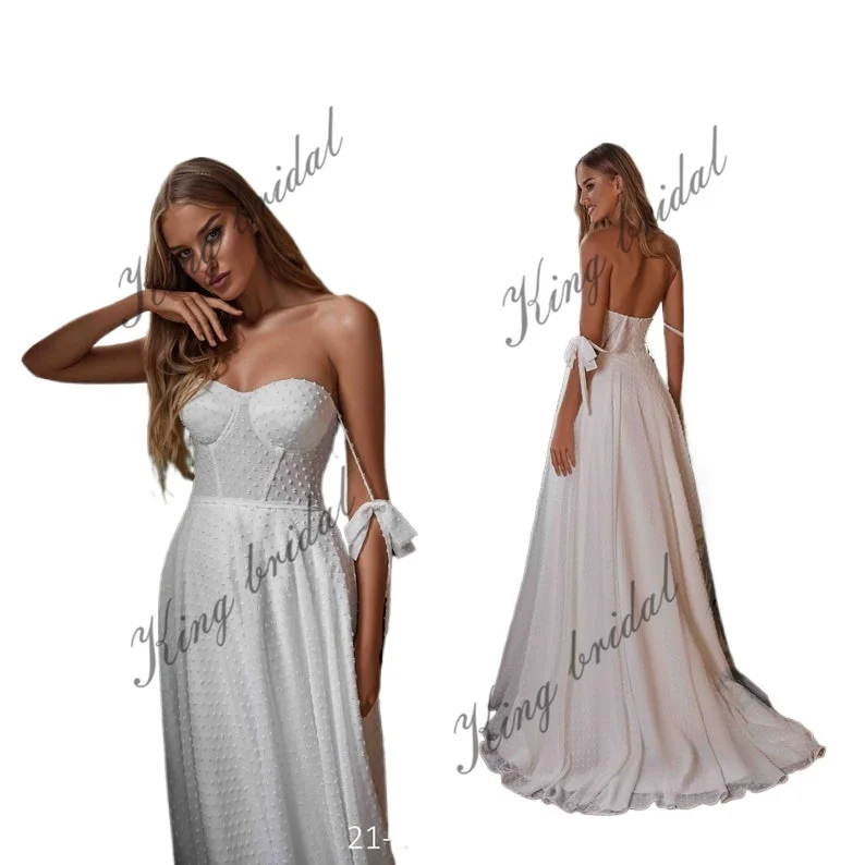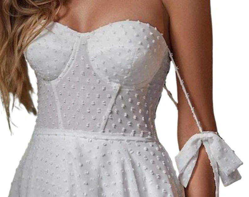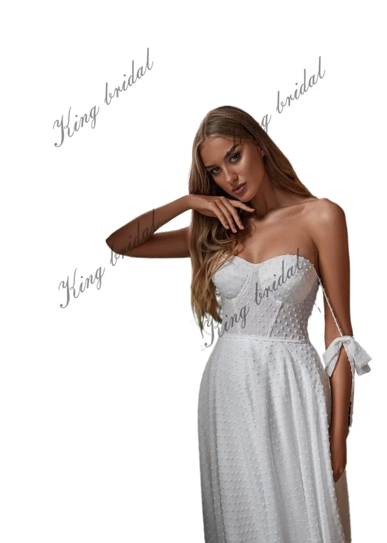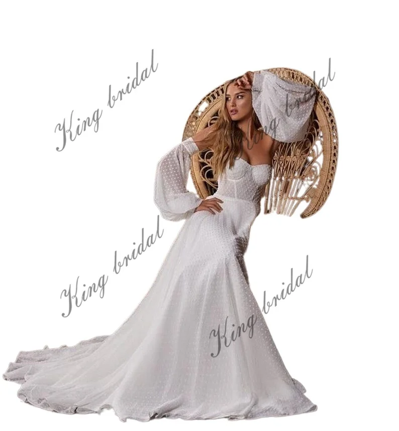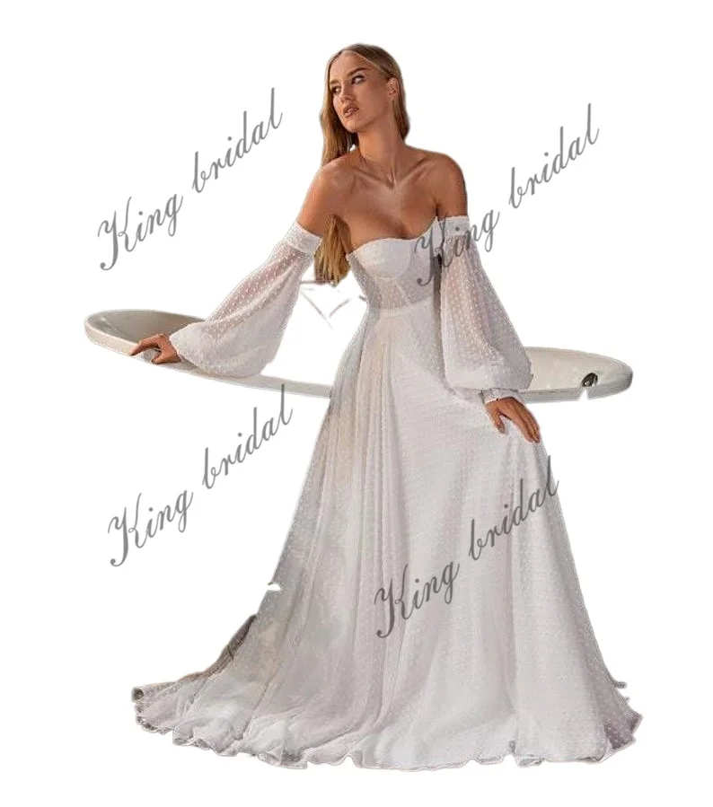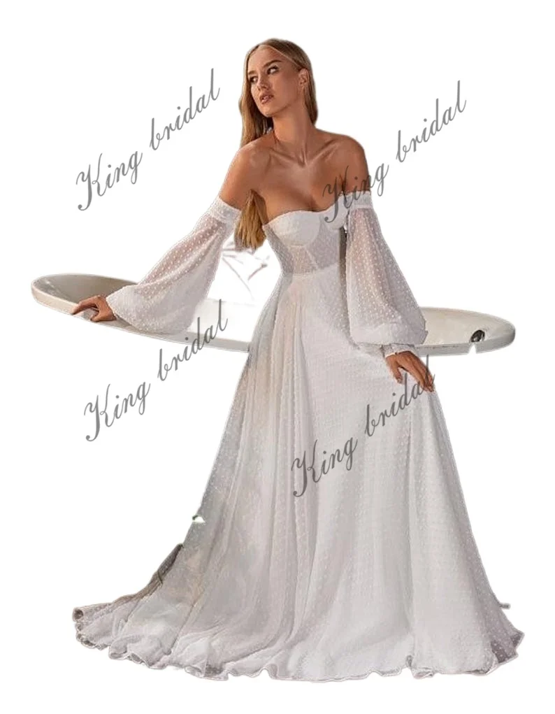 Bustier Gepunktetes seidiges Chiffonkleid Abnehmbare lange Ärmel Brautkleid Minimalistisches Hochzeitskleid Boho Custom Hochzeitskleid
