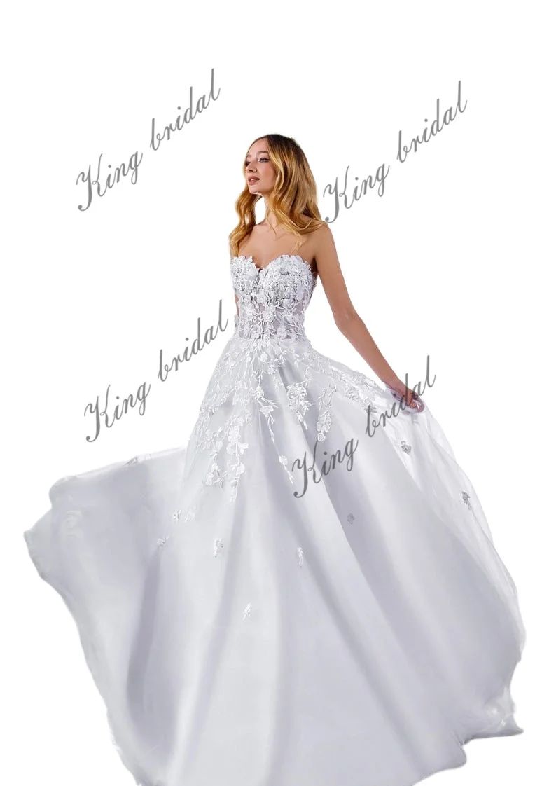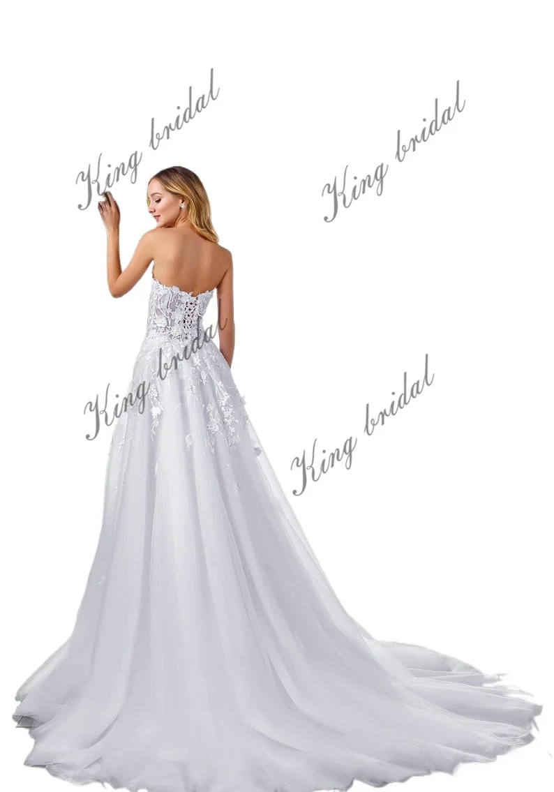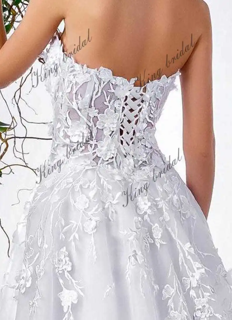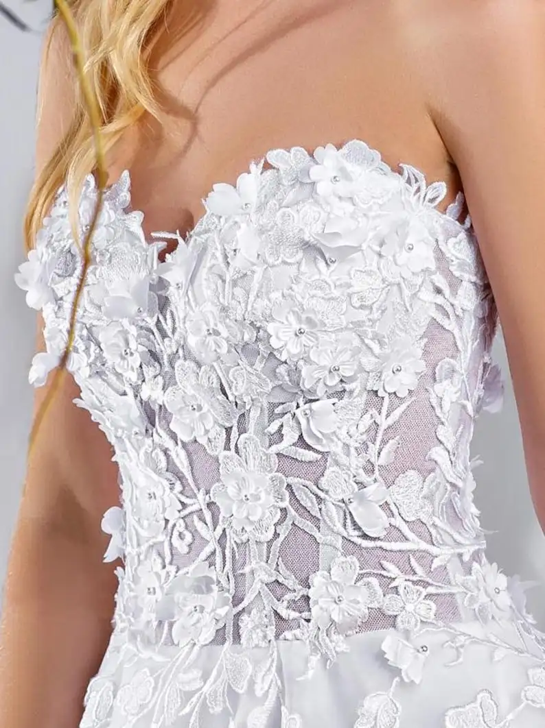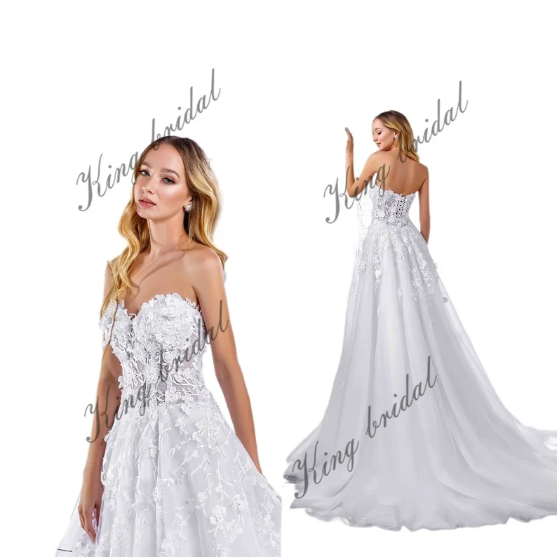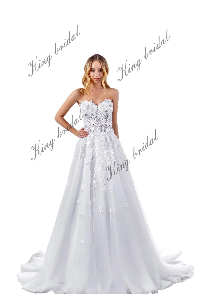 Benutzerdefinierte Blumenspitze Brautkleid A-Linie Tüll 3D Spitze Brautkleid Off the Shoulder Korsett Brautkleider Benutzerdefinierte Brautkleider