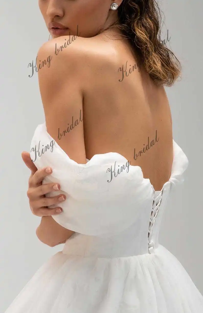 Benutzerdefinierte Blume Organza Brautkleid TÜLL HOCHZEITSKLEID Boho Träger Brautkleider Sweetheart Brautkleider A Linie Brautkleid