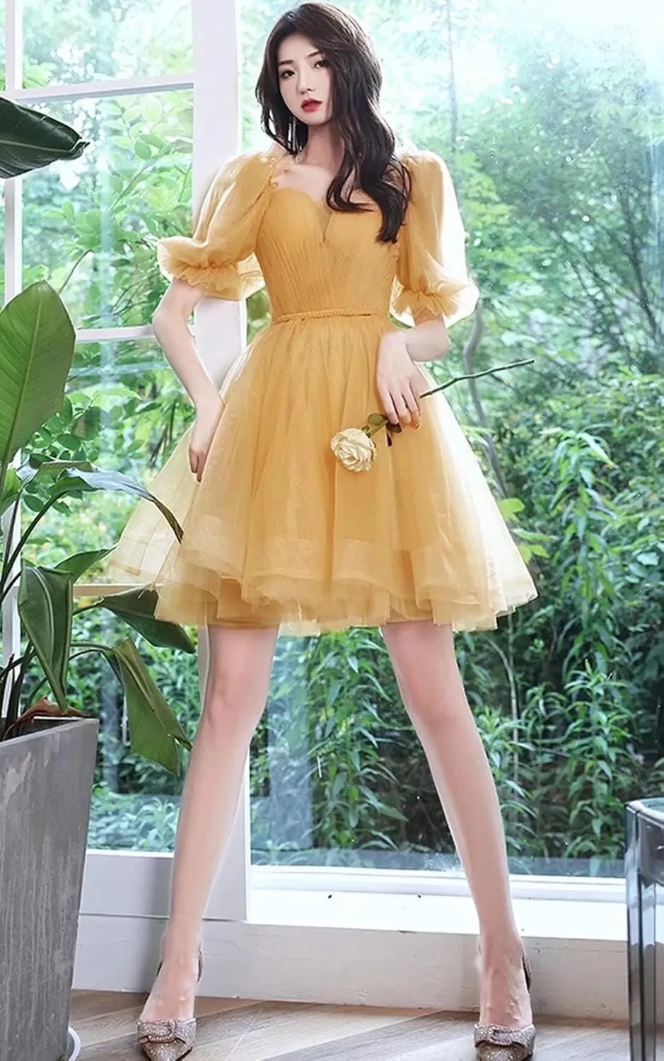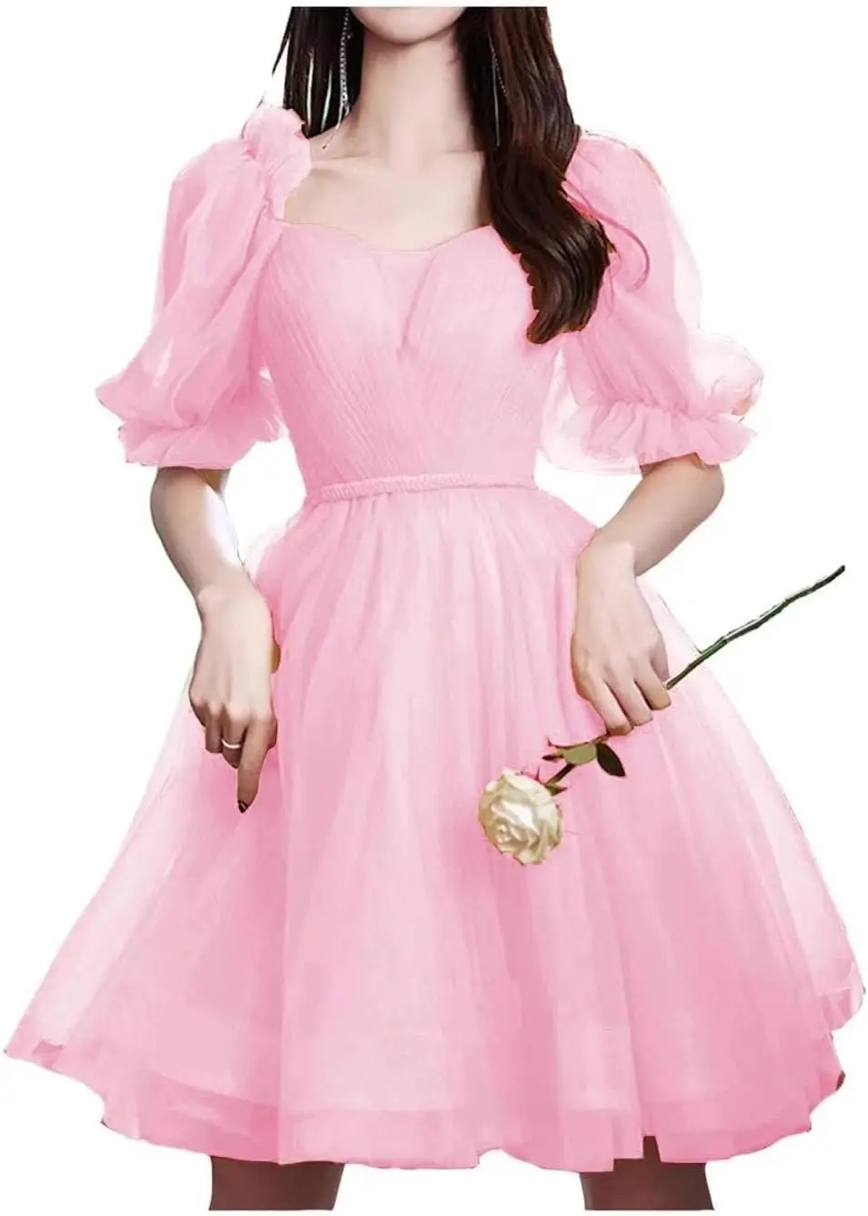 Maßgefertigtes Tüll-Abschlussballkleid für Frauen, kurzes Sweetheart-Puffärmel-Heimkehrkleid, Cocktailkleid, Minikleid, Partykleid