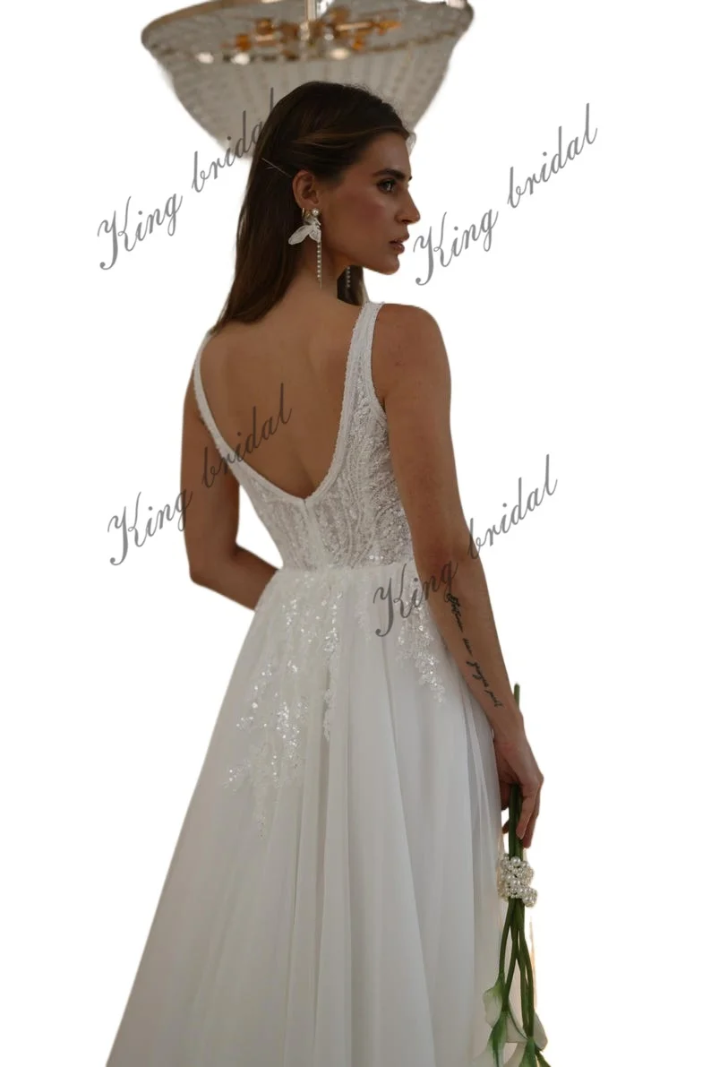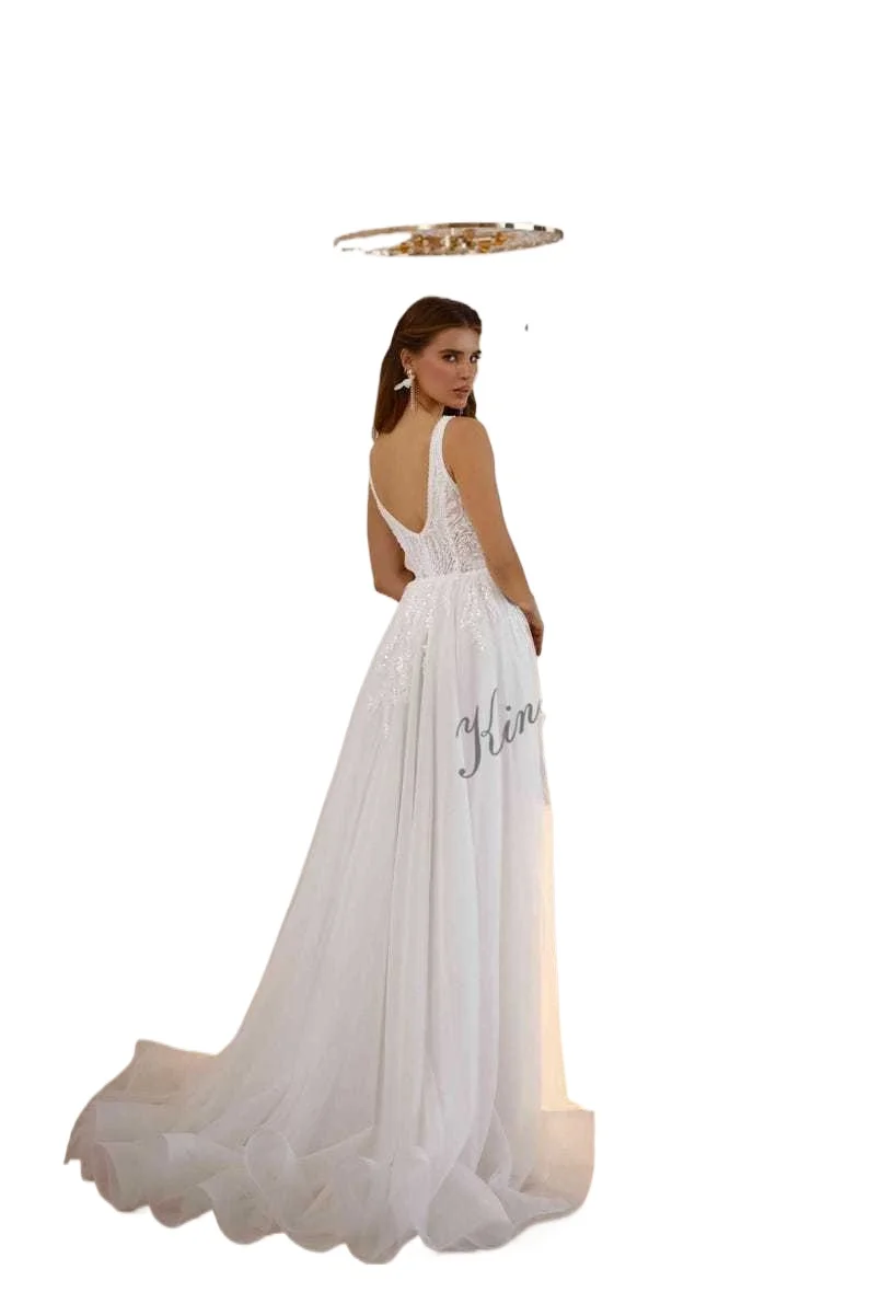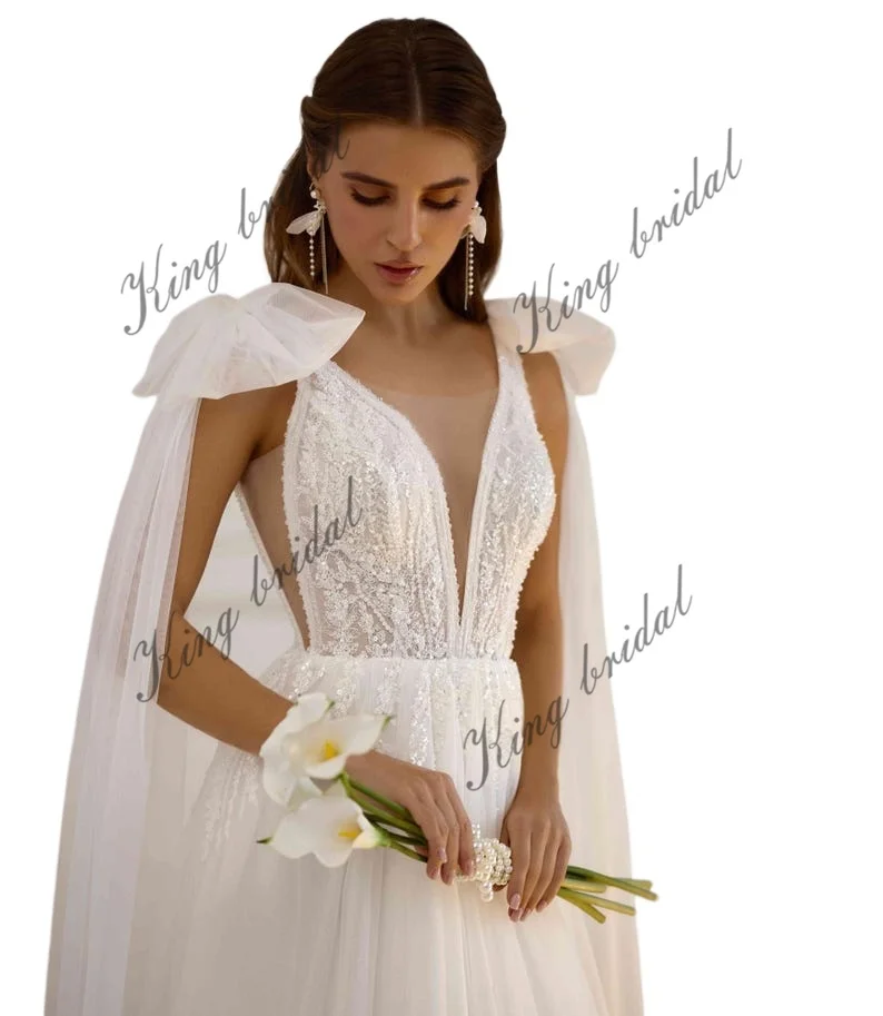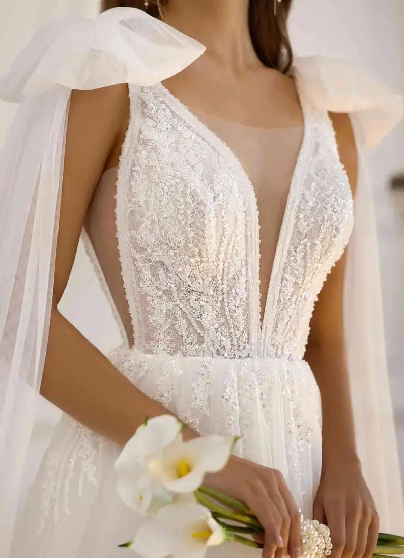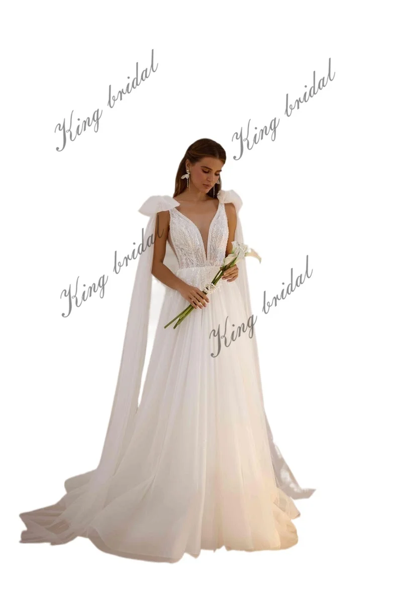 Individuell angefertigtes elegantes handgefertigtes schimmerndes Tüll-Hochzeitskleid mit Perlenspitze, schlichte Brautkleider, Hochzeitskleid, Brautkleider