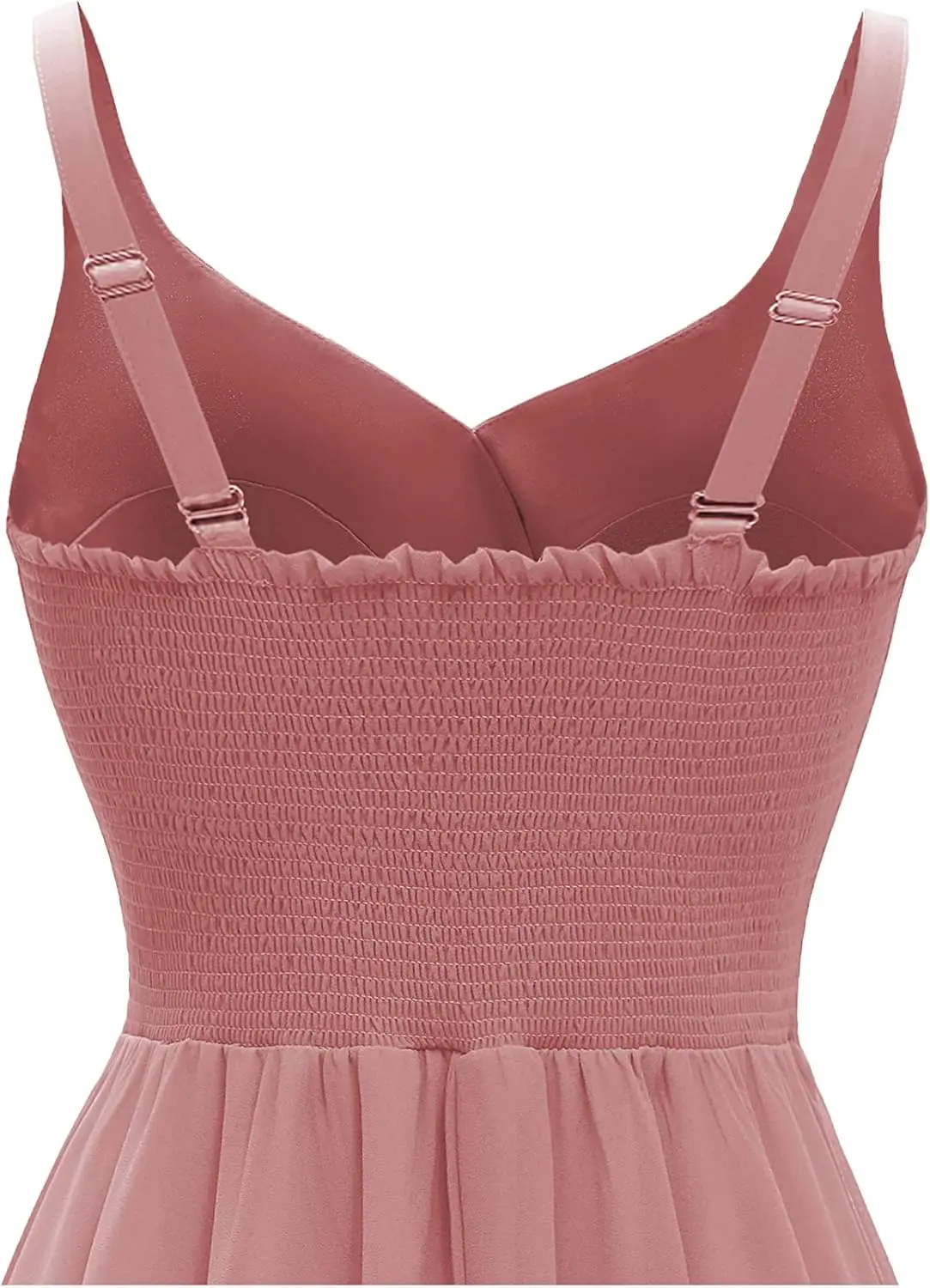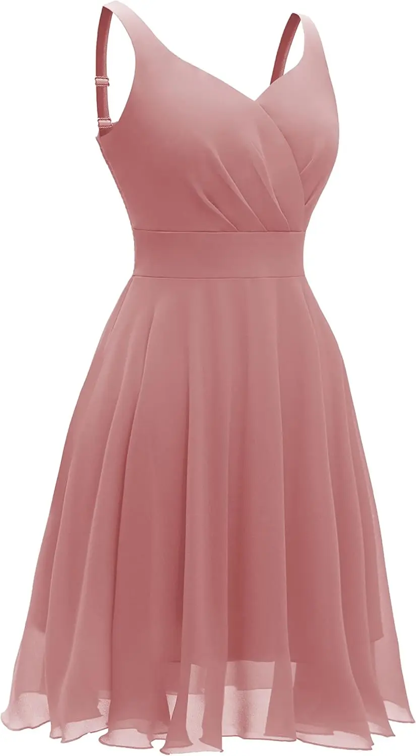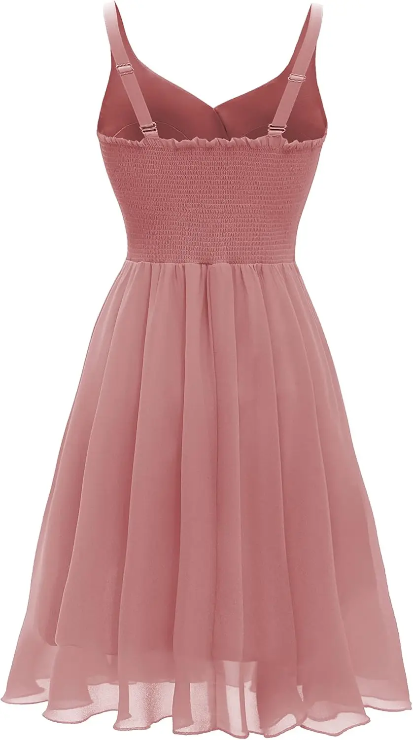 Dressever Sommer-Cocktailkleid mit V-Ausschnitt, verstellbaren Spaghettiträgern, Chiffon, Sommerkleid, Partykleider, kurzes Ballkleid