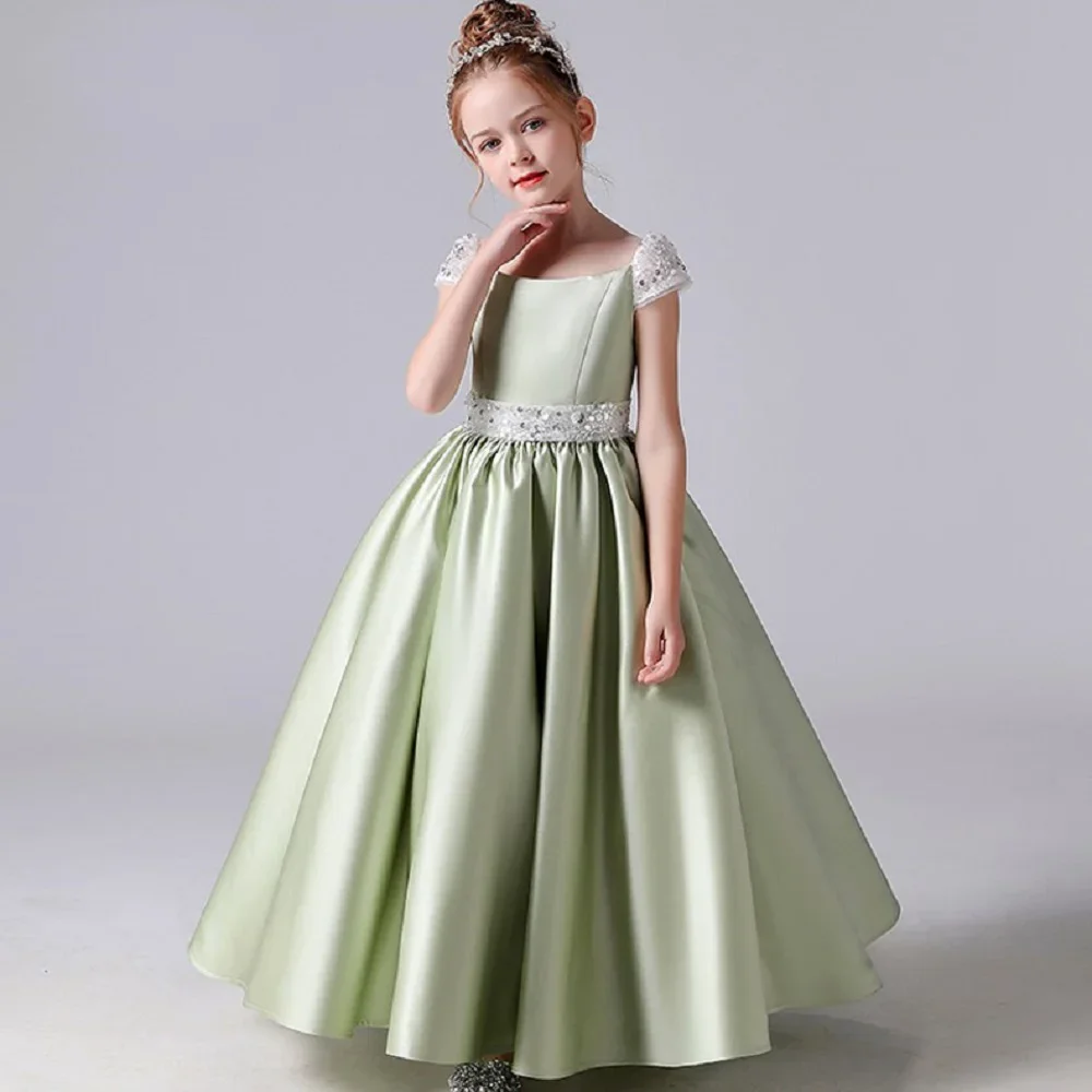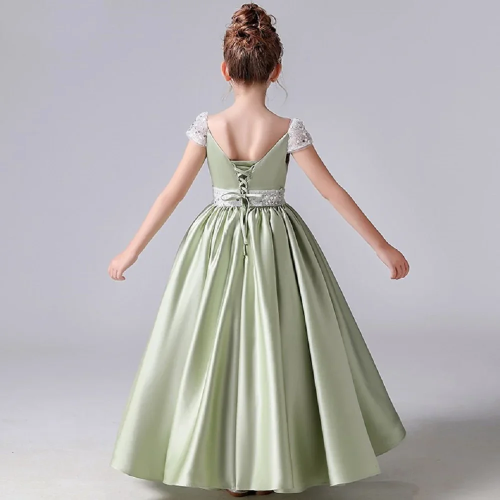 Elegante Satin Mädchen Geburtstag Party Pailletten Prinzessin Formale Erstkommunion Kleider Grün Blumenmädchen Kleider für Hochzeit