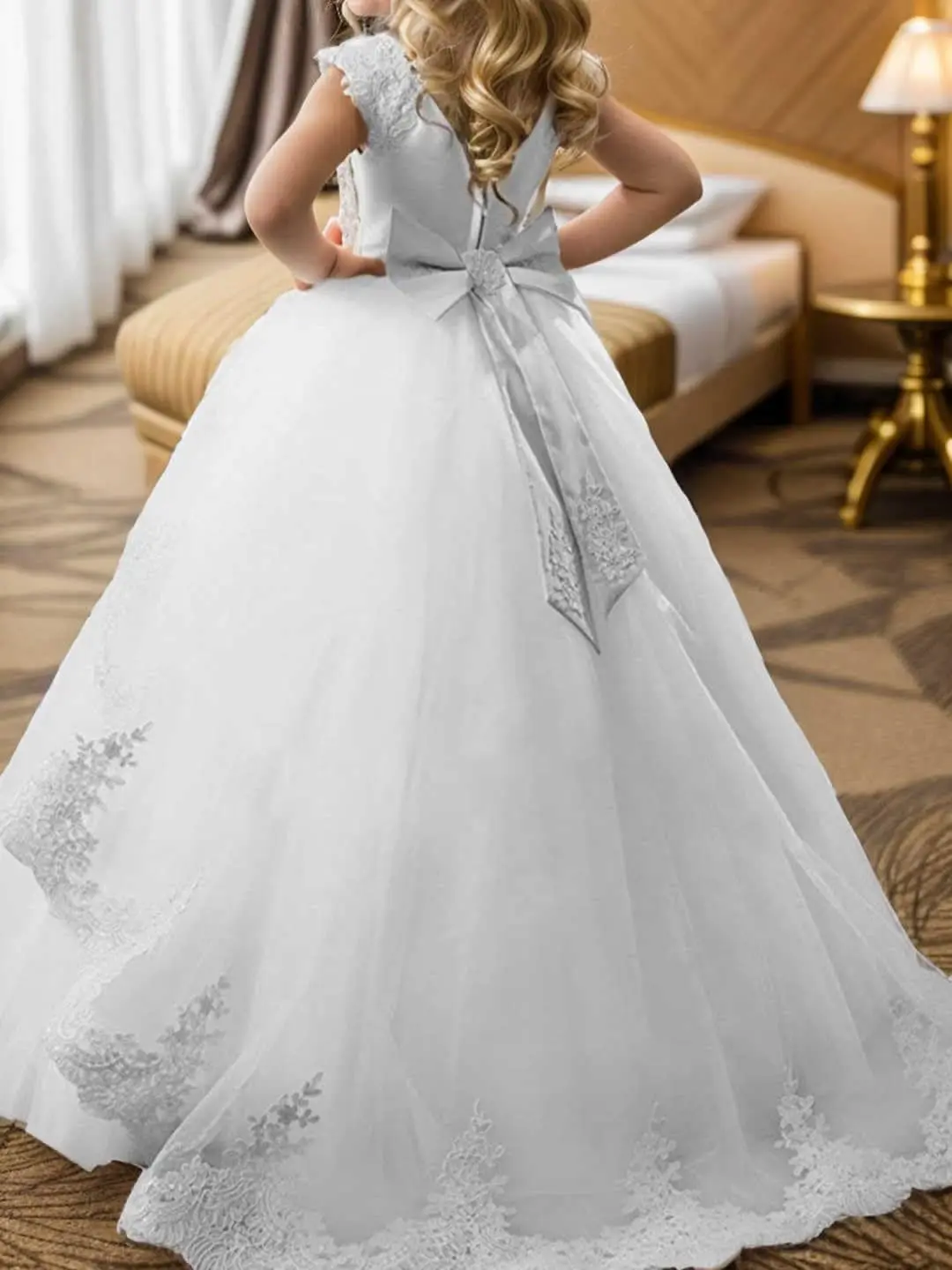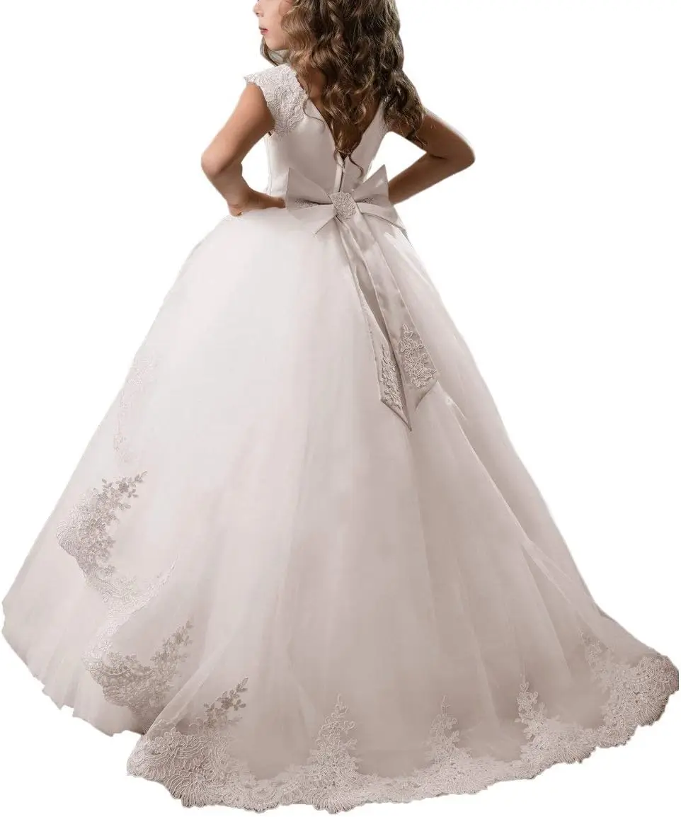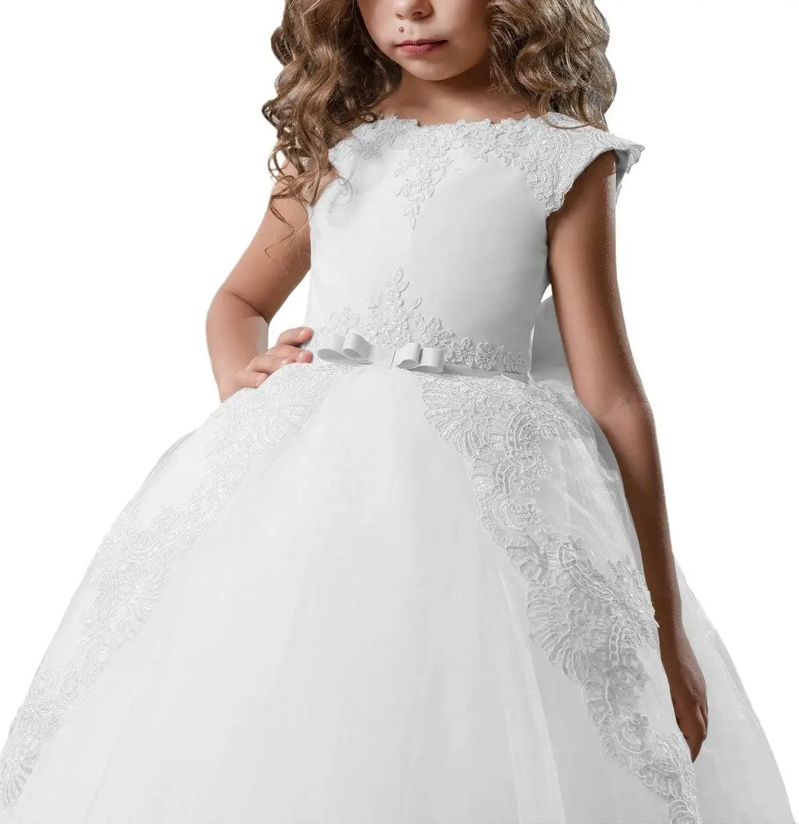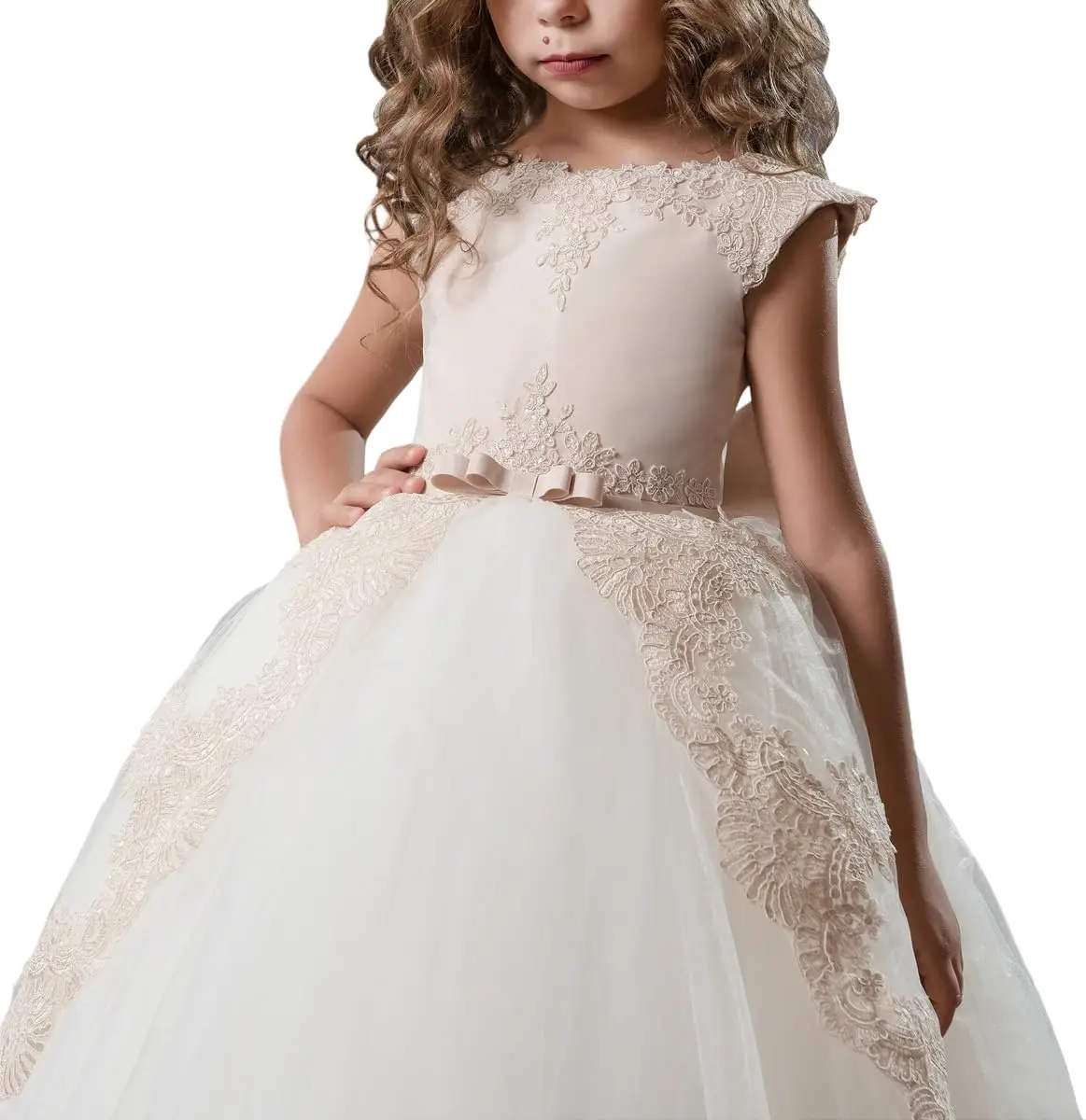 Ausgefallenes Blumenmädchenkleid, lang, Spitze, Festzug, bauschig, Tüll, Ballkleid, Mädchenkleider für Party und Hochzeit, Prinzessinnenkleid