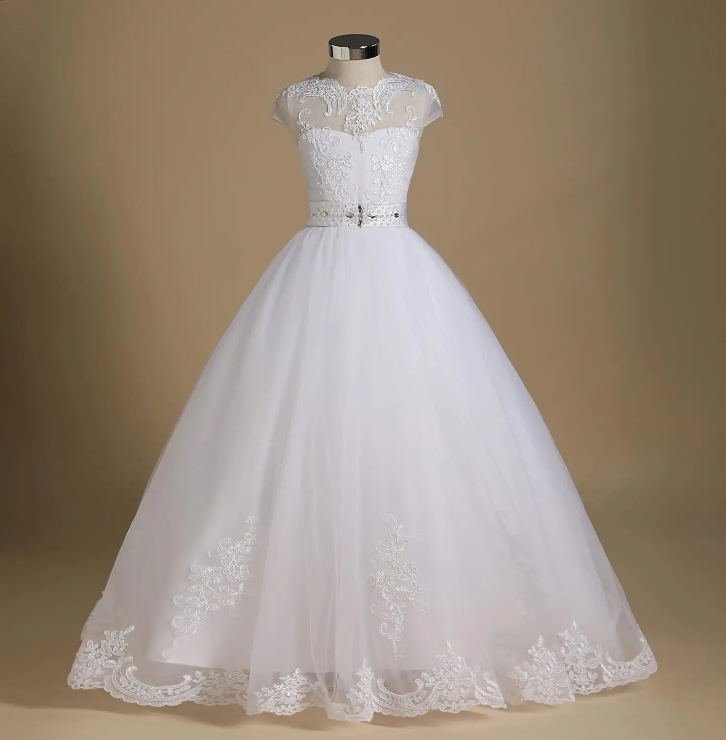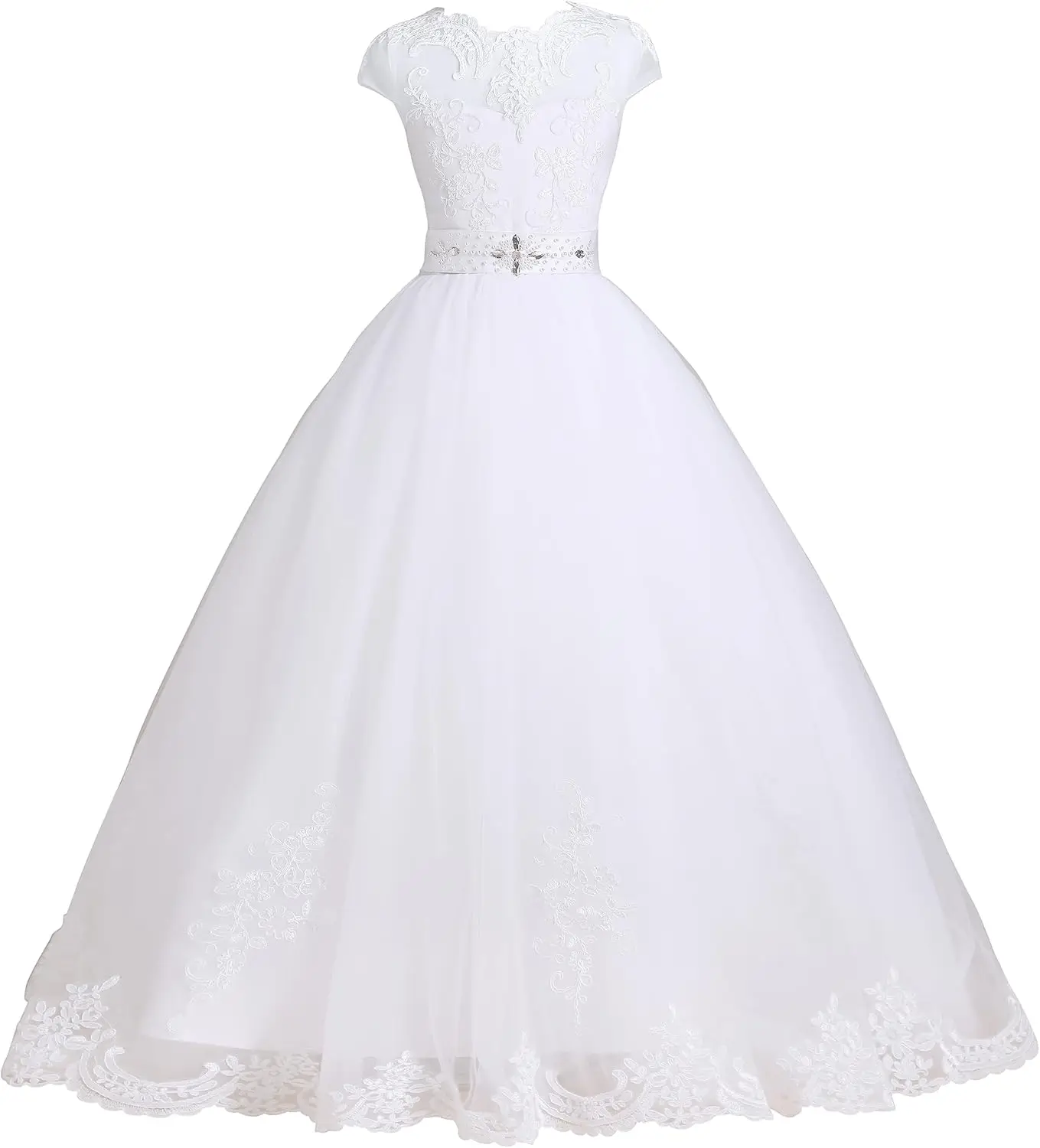 Erstkommunion Blumenmädchen Kleid Tüll Spitze Brautjungfer Festzug Kleider Ballkleid Hochzeit Party Bodenlangen Prinzessin Kleider