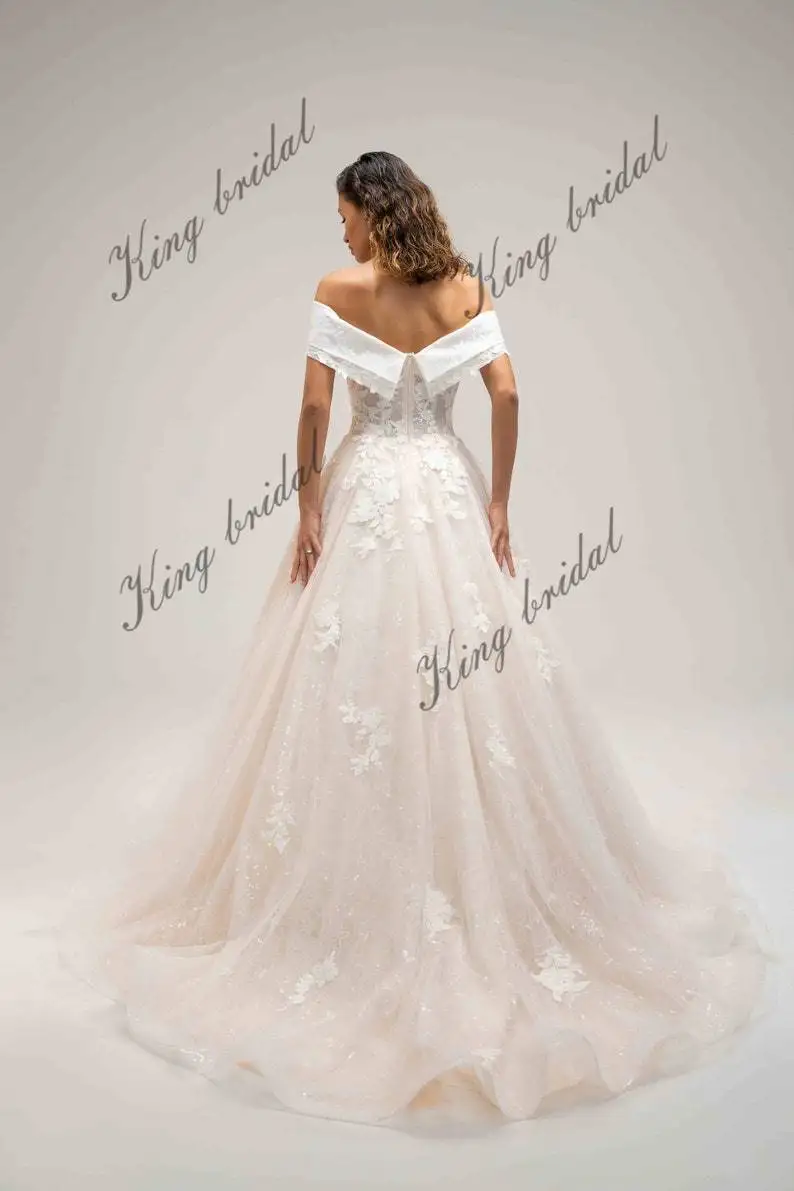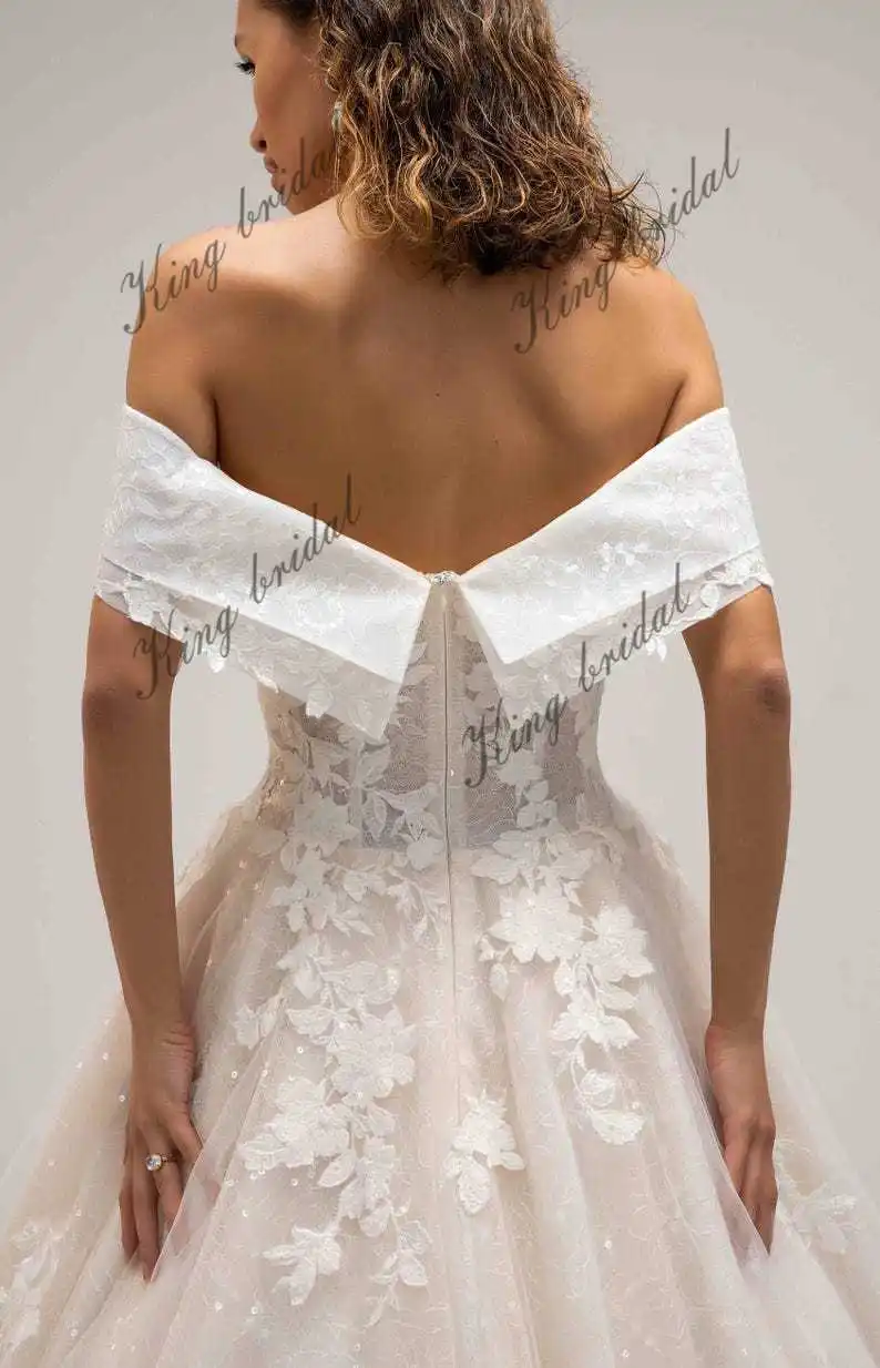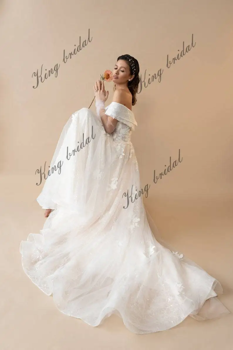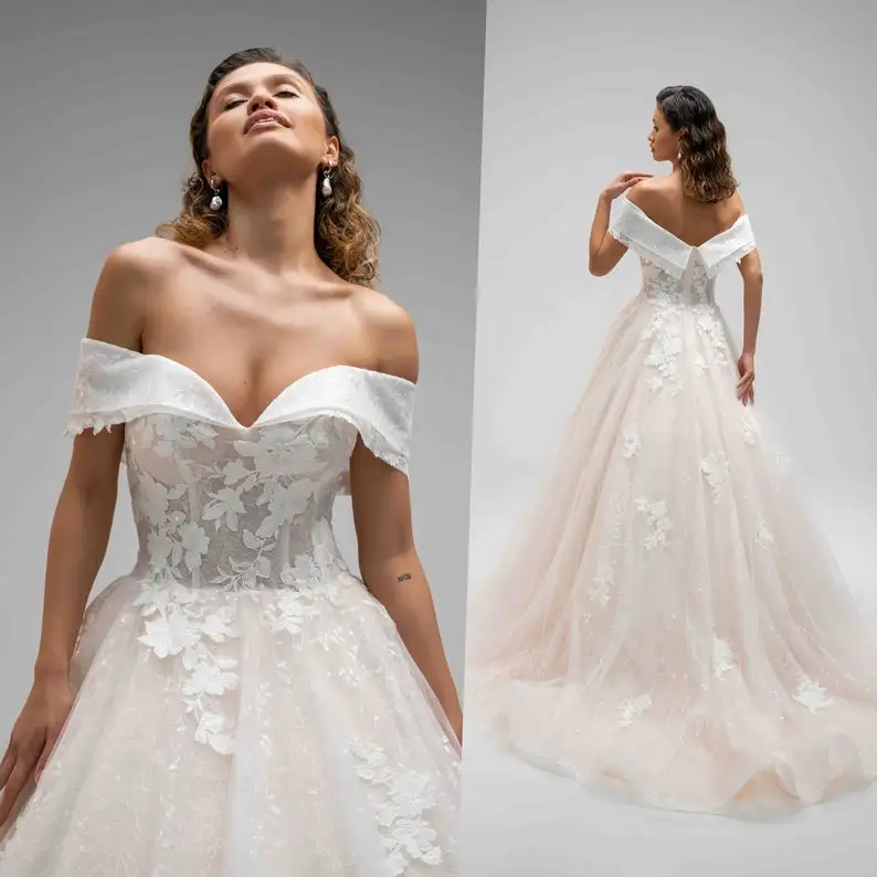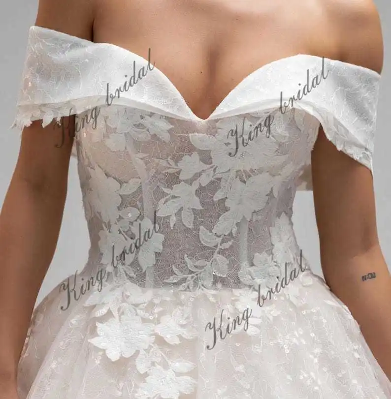 Blumenspitze Kleid Glitter Chantilly Tüll Brautkleider Off-Shoulder Korsett einfache Brautkleid benutzerdefinierte Brautkleid