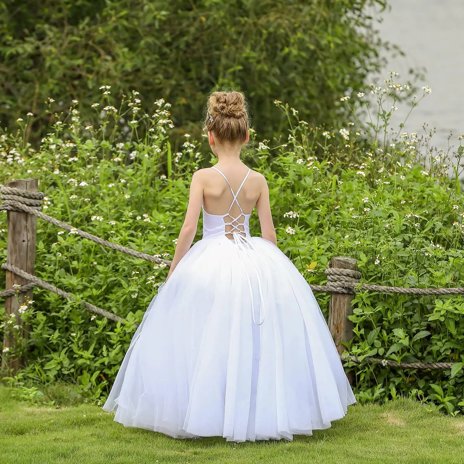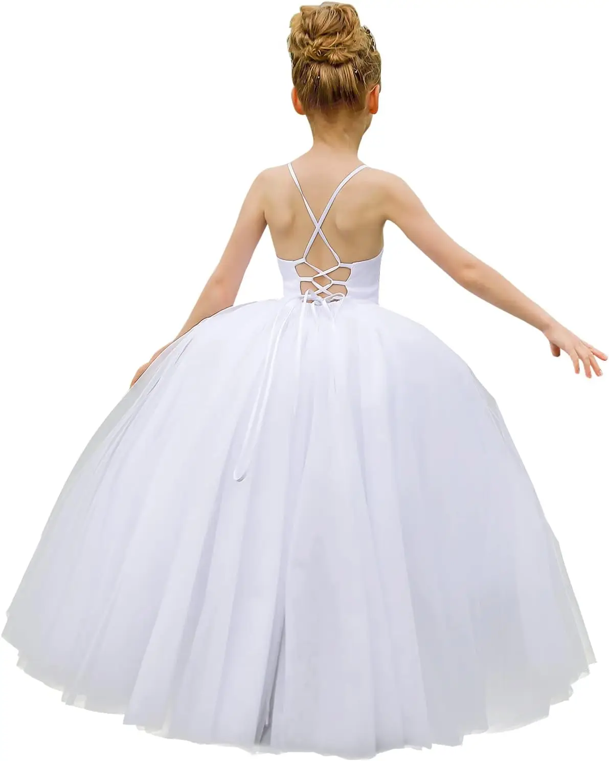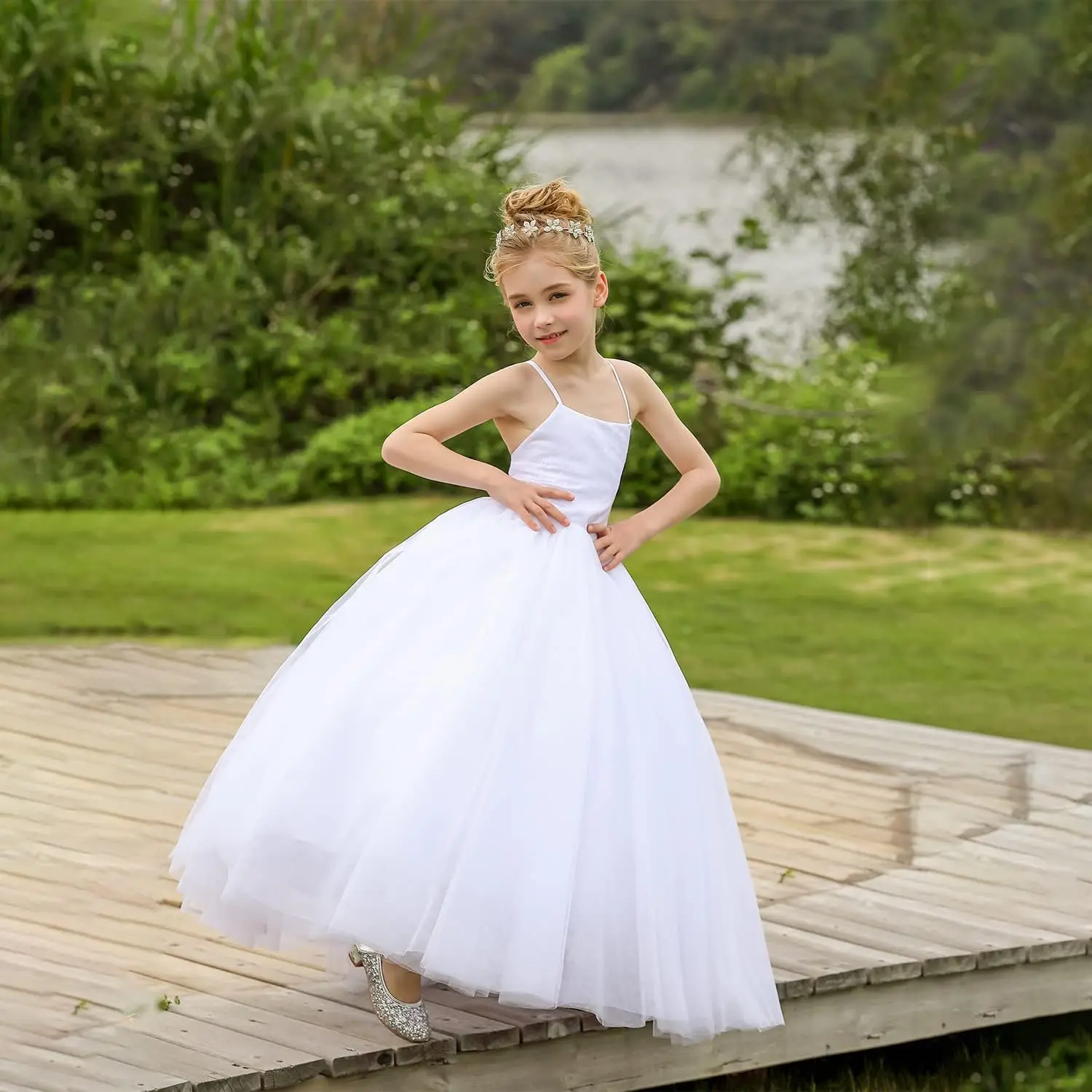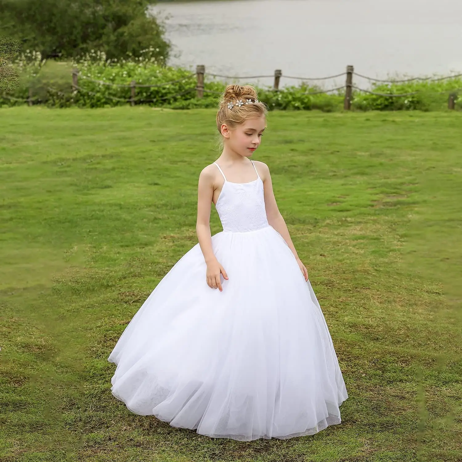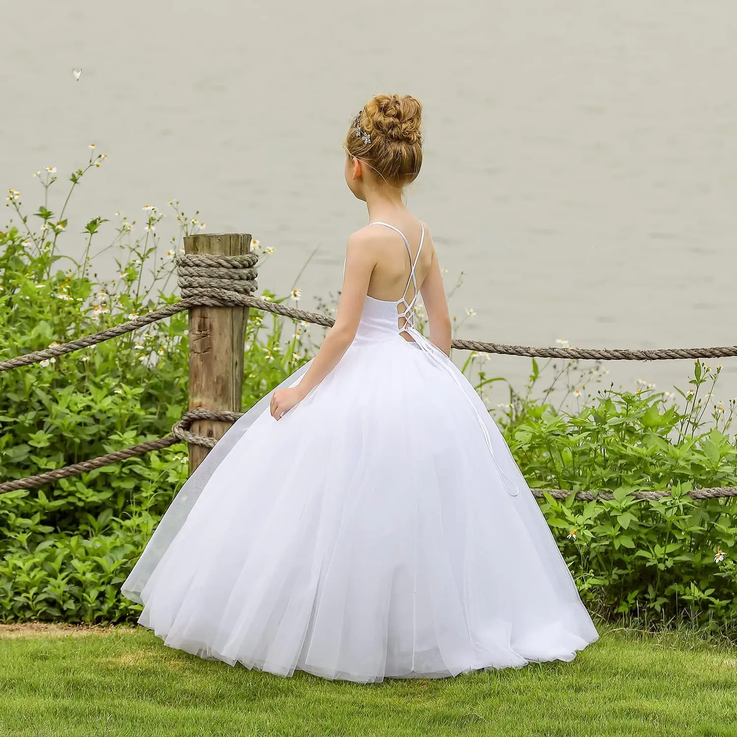 Blumenmädchenkleid mit gekreuzten Trägern, Spitze, Brautkleider, Party, Brautjungfer, Ballkleid, Prinzessinnenkleid, Festzugskleider für Mädchen