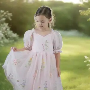 Blumenmädchen Kleid Fee Erster Geburtstag Hellrosa Kleinkind floral Wildblumen Geburtstagskleid Baby Blumenmädchen Kurzarm