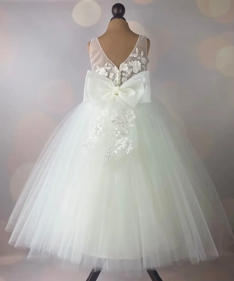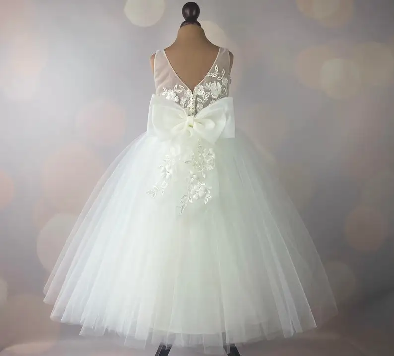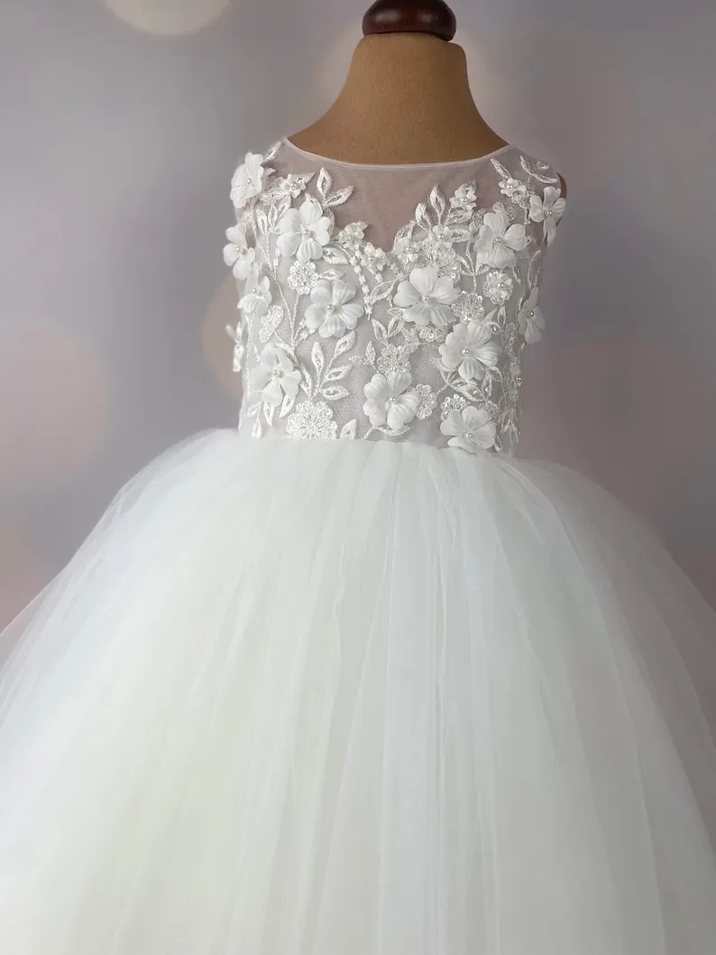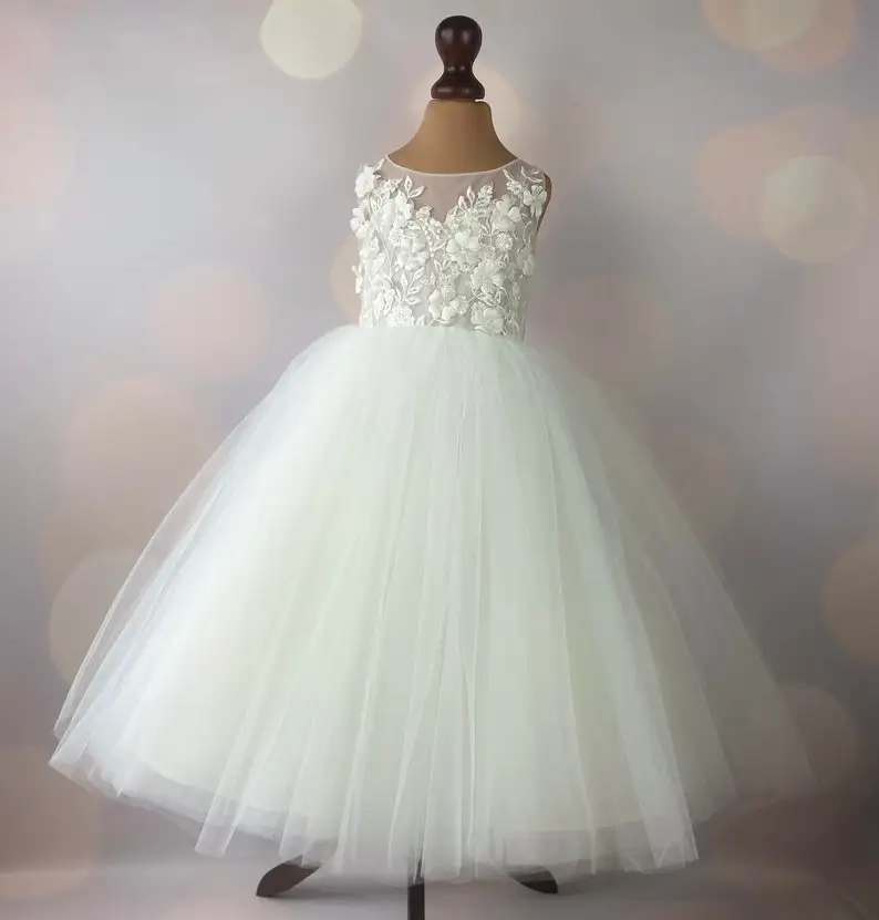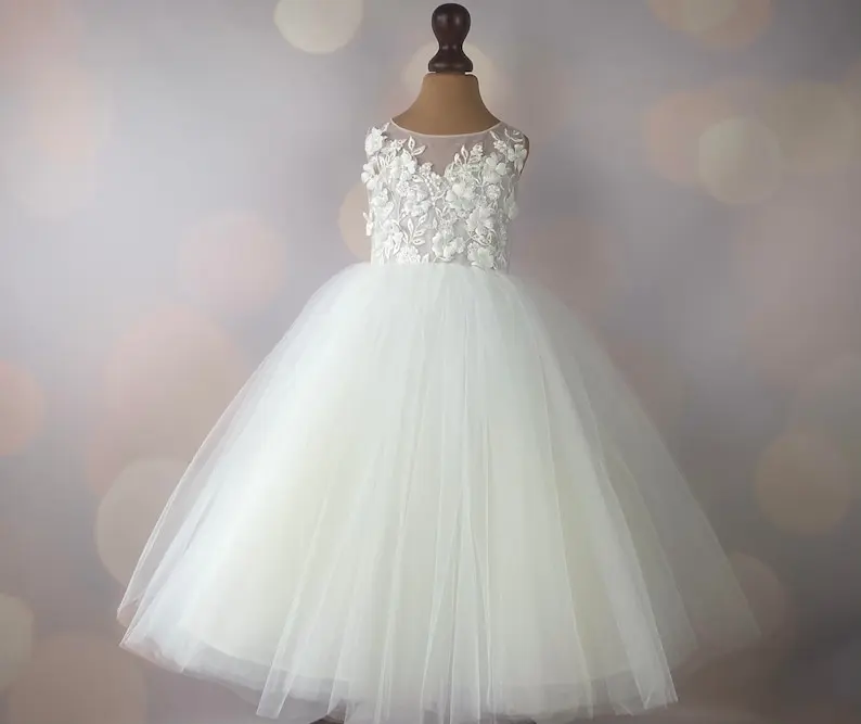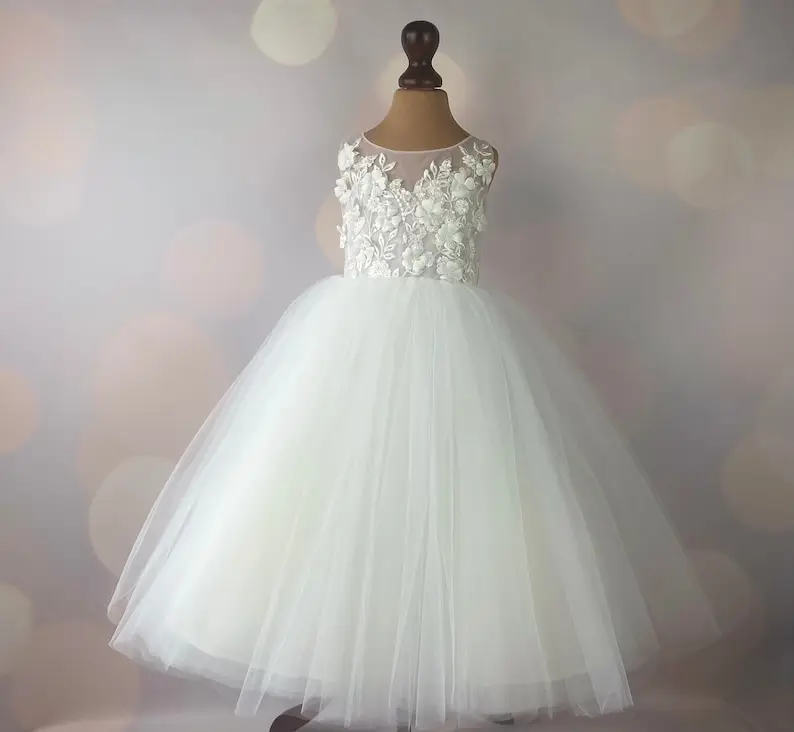 Blumenmädchenkleid elfenbein, Bodenlänge, Volle Länge, Erstkommunionkleid, Babykleid, Spitzenkleid, Hochzeitsprinzessinnenkleid