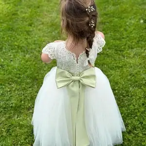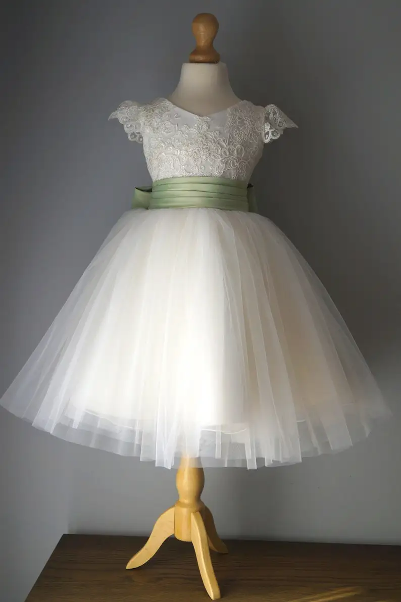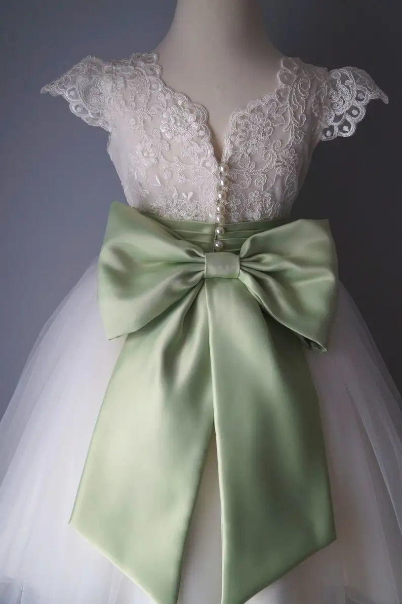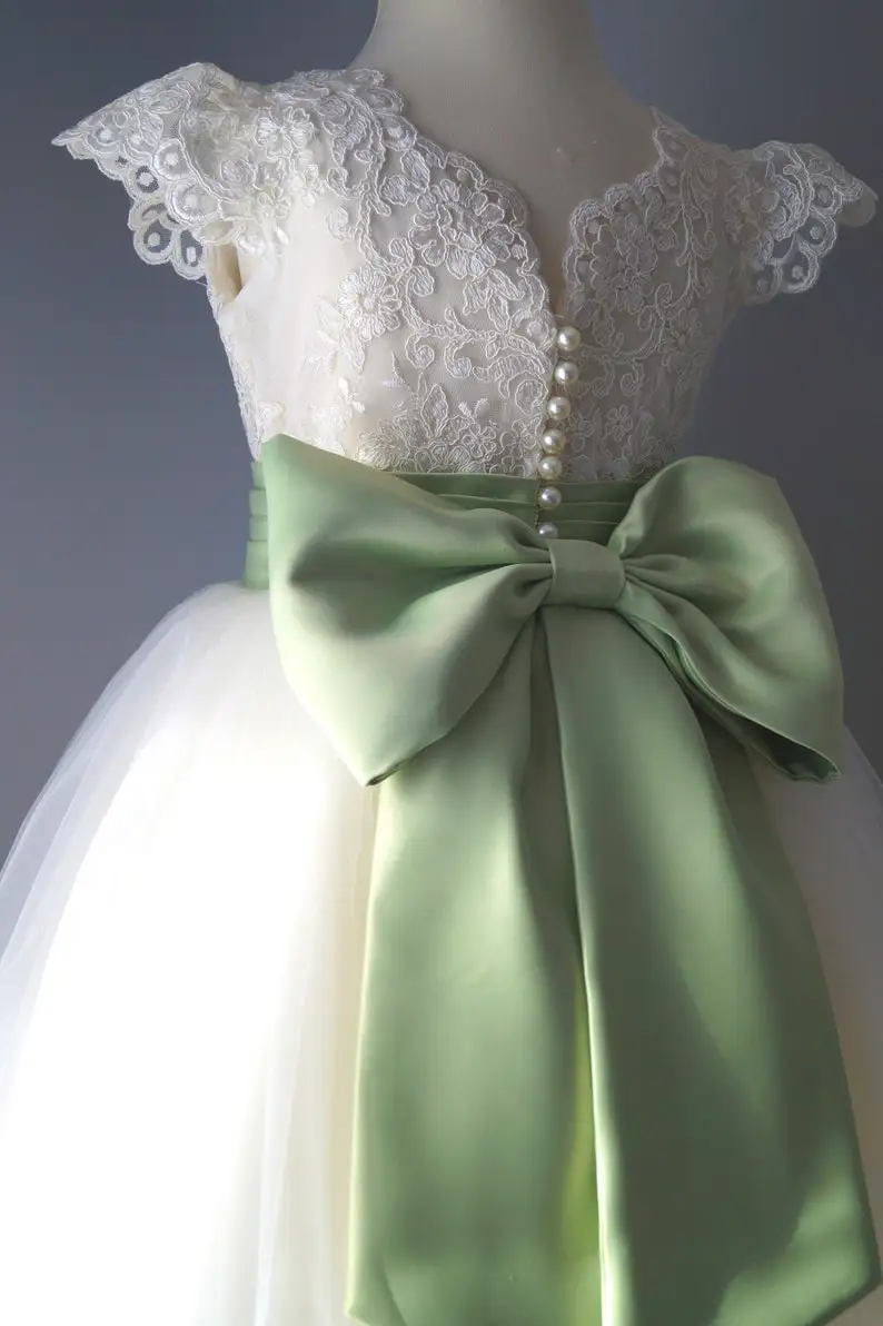 Blumenmädchenkleid, Salbeigrüne Schärpen, Geburtstagskleider für Babys, Spitze, Tüll, Erstkommunionkleider, Hochzeitsprinzessin, Kinderballkleid