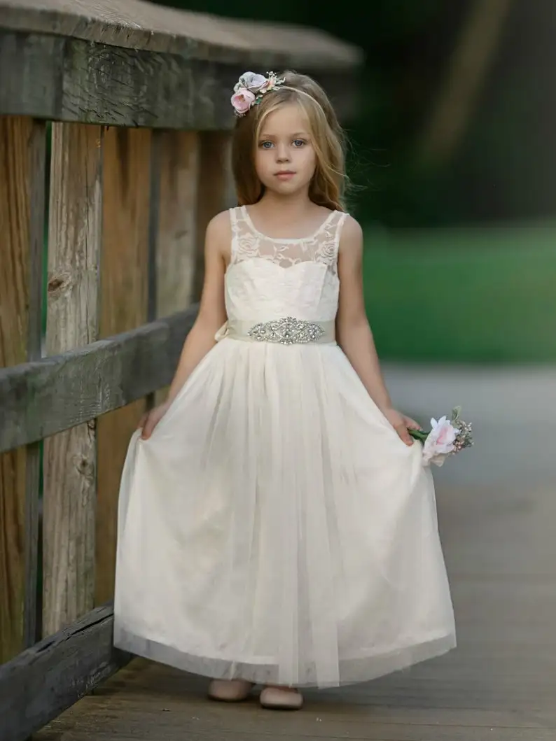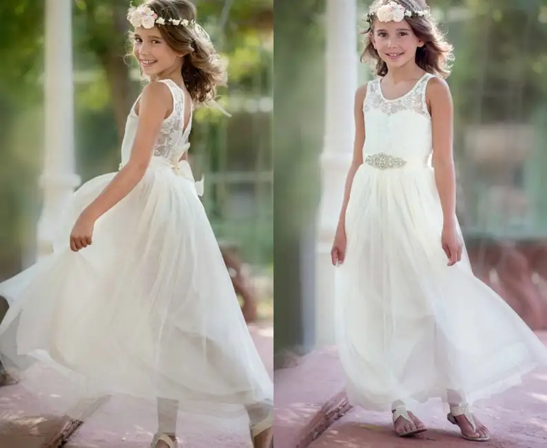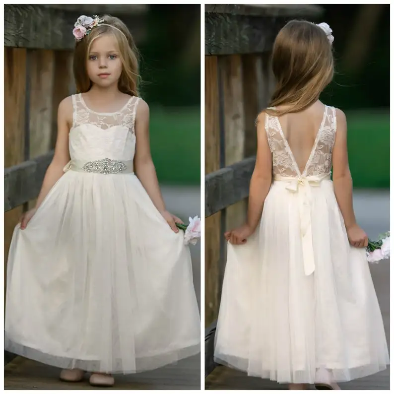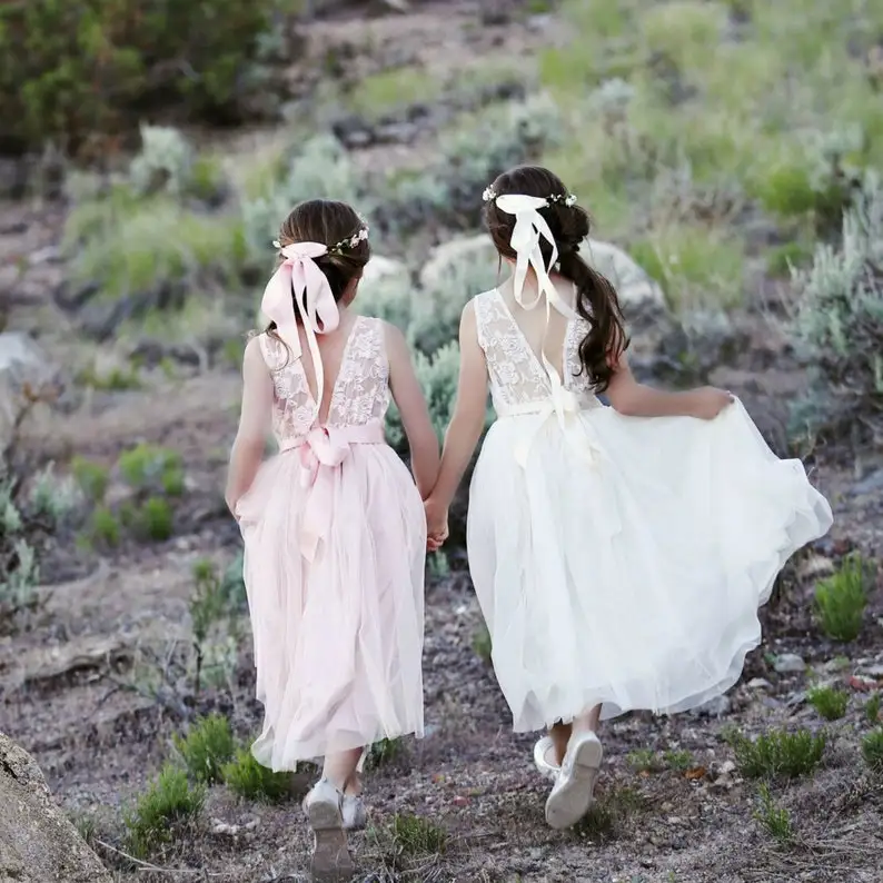 Blumenmädchenkleider Böhmische Blumenmädchenkleider Tüll Erstkommunionkleid Kleider Strandparty Mädchen Junior Brautjungfernkleider