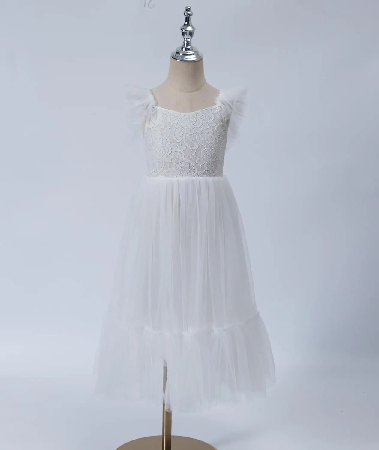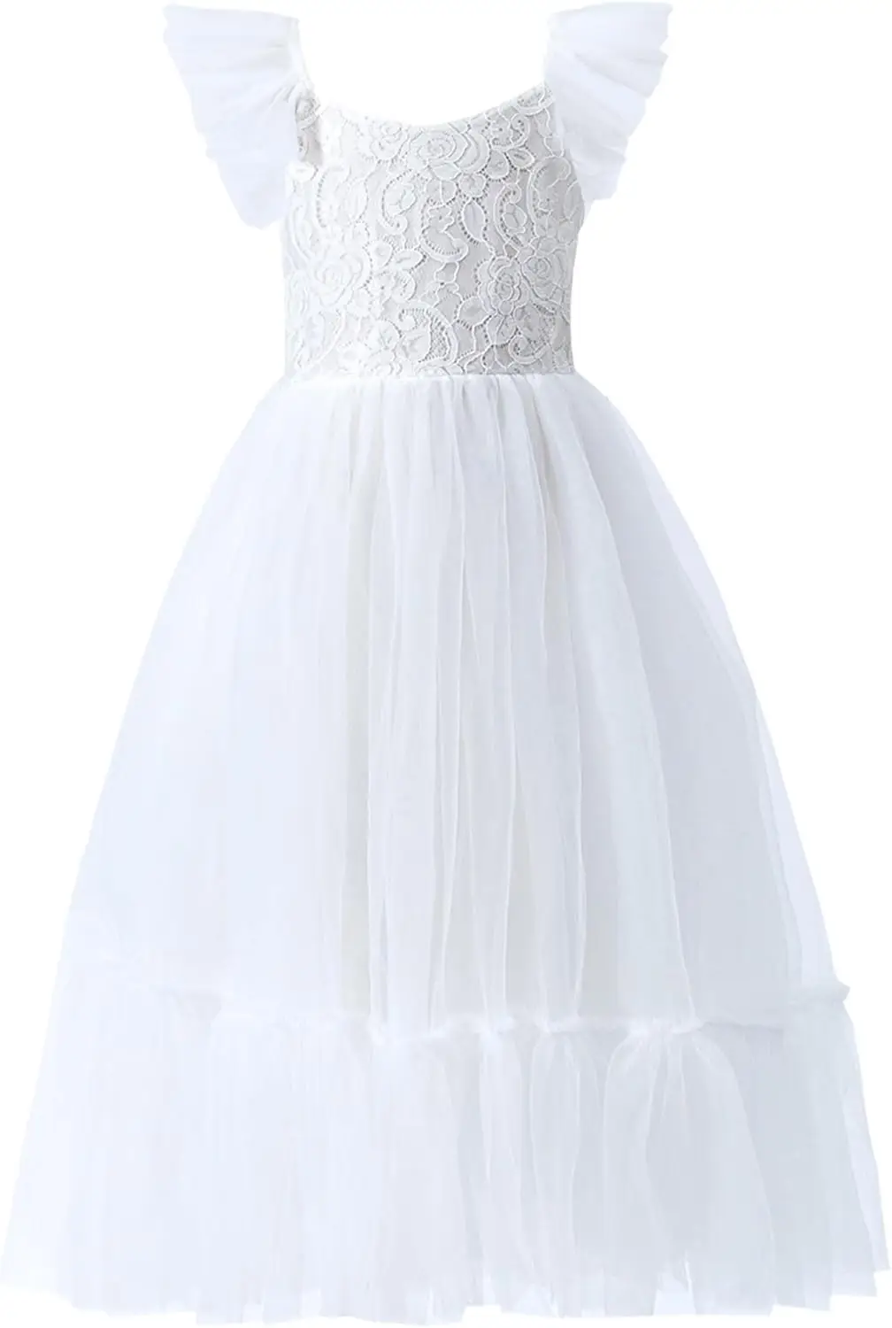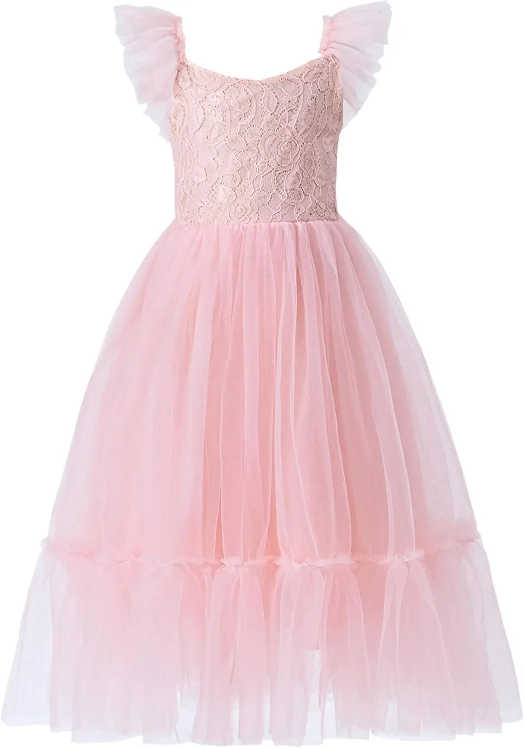 Mädchen A-Linie Gerades Tüll Tutu Kleid Binden Zurück Sommer Ärmelloses Spitzen Blumenmädchenkleid für Geburtstagsparty Prinzessinnenkleid