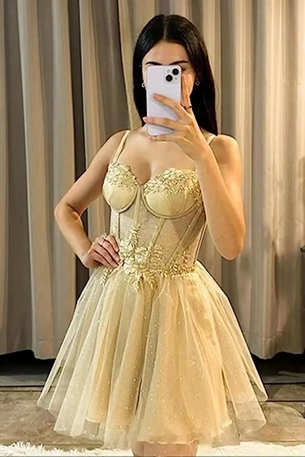 Glitzerndes Tüll-Heimkehrkleid mit 3D-Blumen und Spaghettiträgern, kurze Ballkleider für Teenager, Cocktailkleider, Minikleid