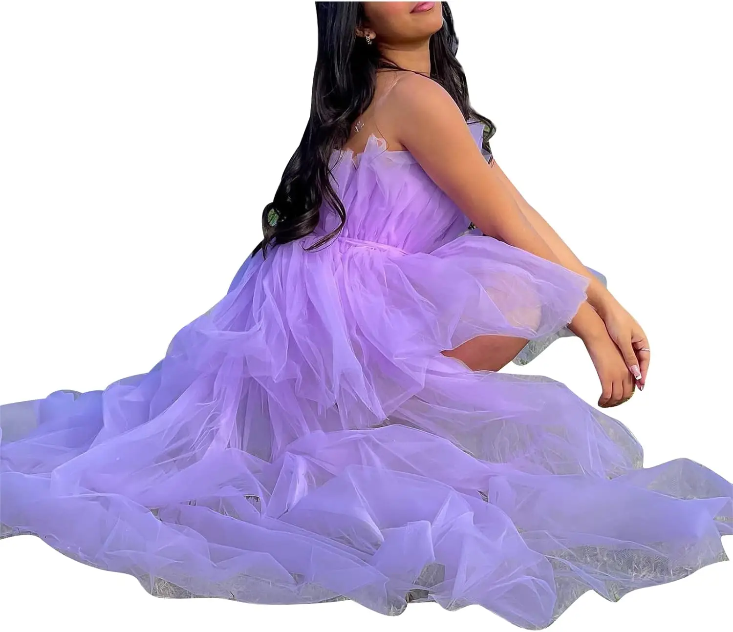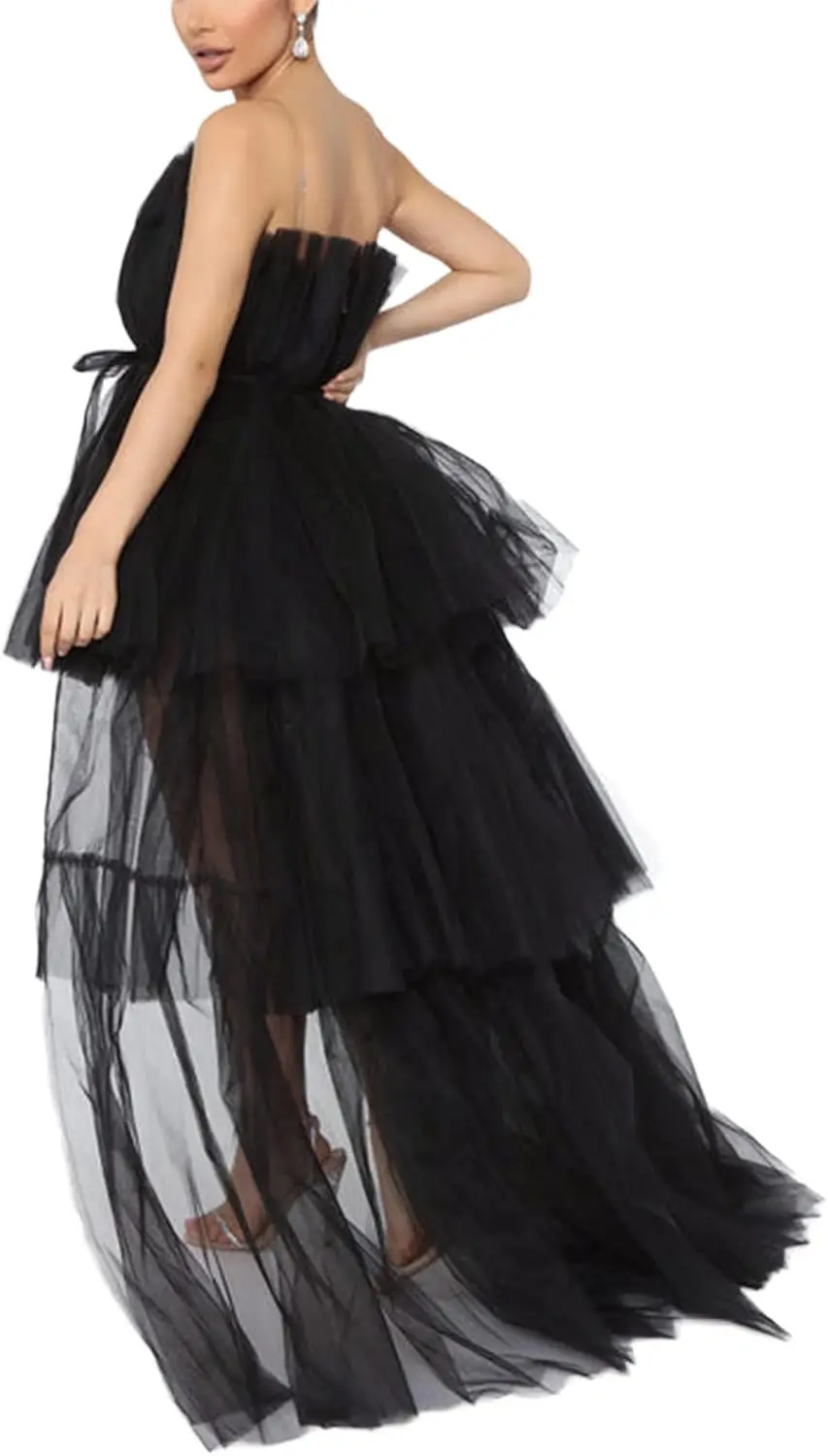 High Low Tüll-Ballkleid für Damen, elegantes, schulterfreies, fließendes A-Linien-Minikleid, Cocktailparty-Abendkleid