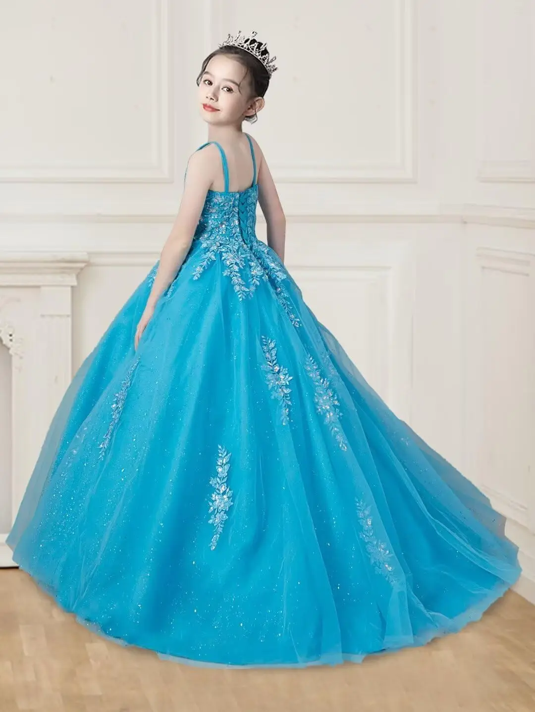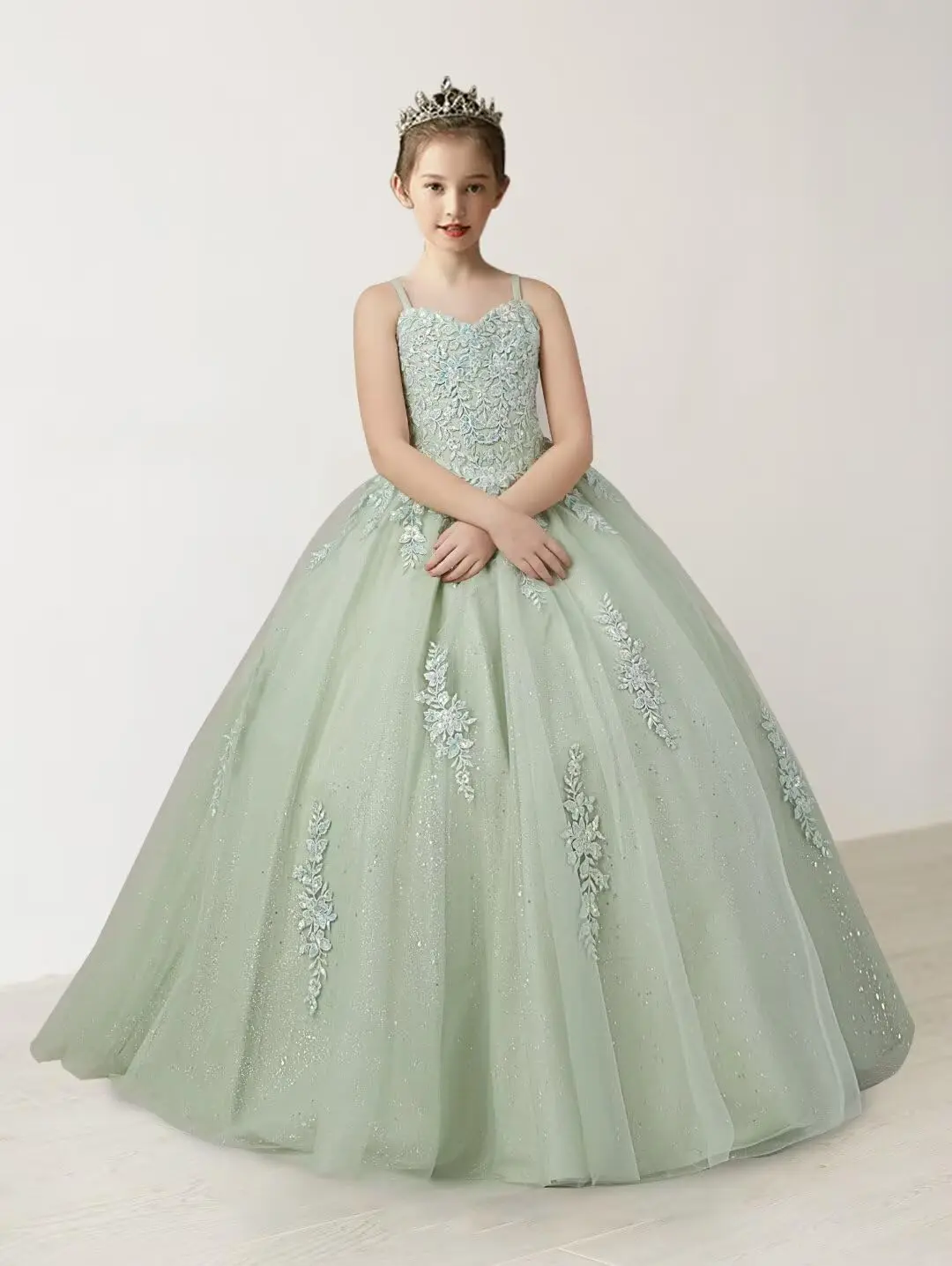 Spitzenapplikationen Tüll Festzugskleider für Mädchen Ballkleid Blumenmädchenkleid Prinzessin Kleinkind Kinder Abschlussball Festzugskleid