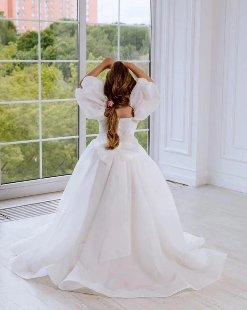 Die hübschen Ballonärmel und der dezente Ausschnitt, der sanft auf den Schultern sitzt, verleihen einen Hauch von Klasse und halten gleichzeitig alles schlicht und süß.