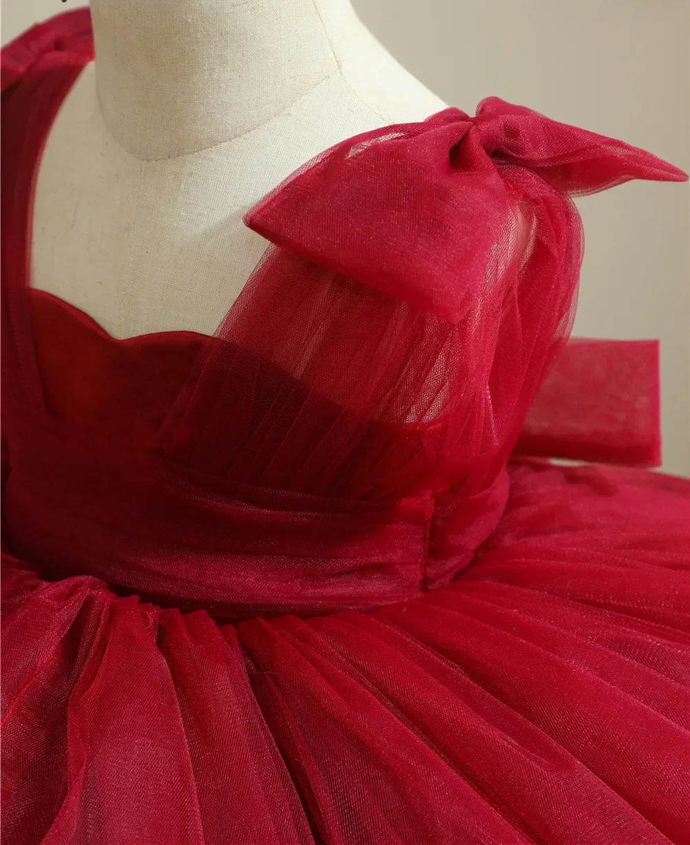 Festzugskleider für Mädchen Erstkommunionkleid Maßgeschneidertes Burgunder Blumenmädchenkleid für Hochzeit mit Schleife