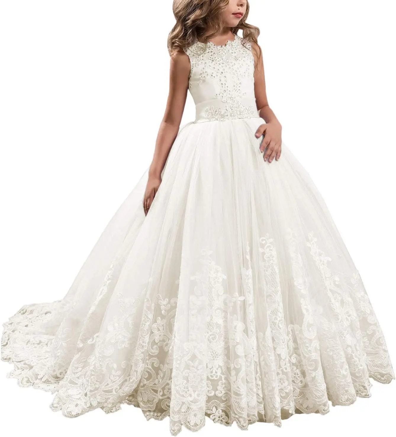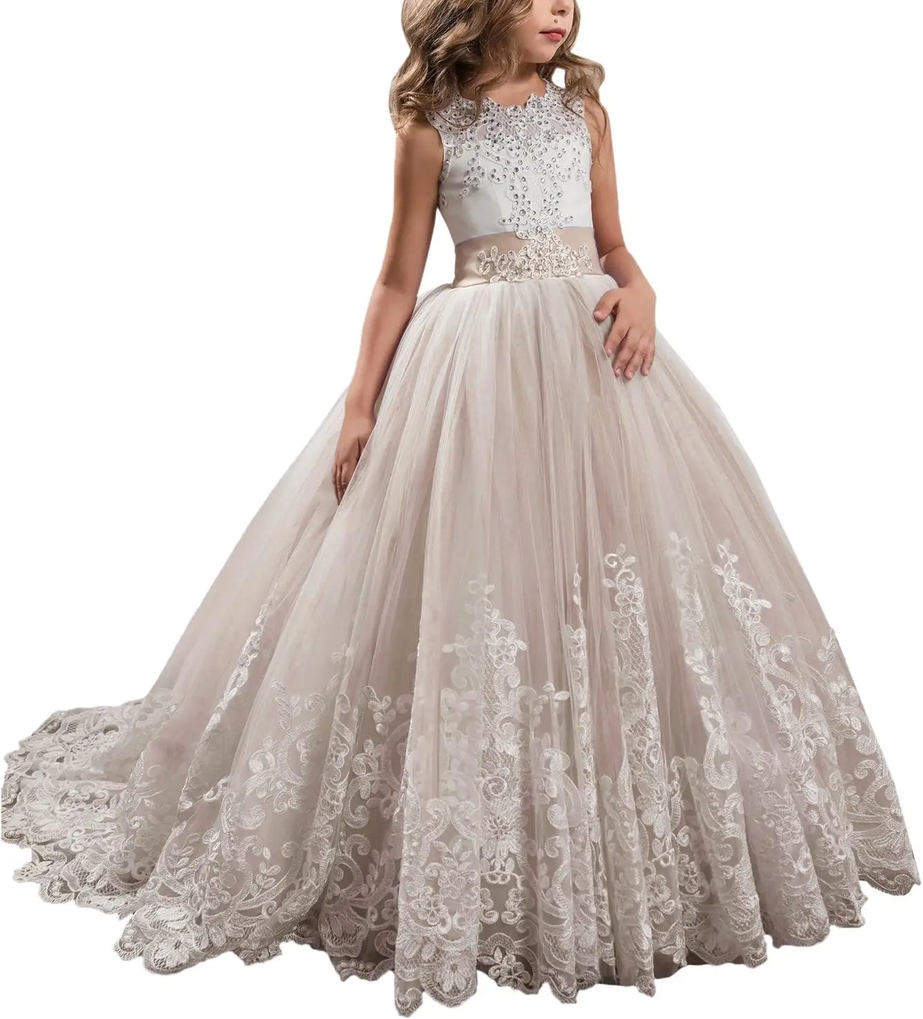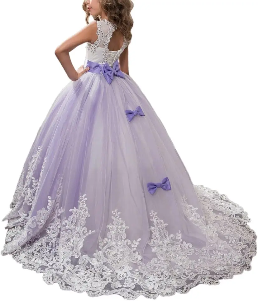 Prinzessin Lilac Lange Mädchen Festzugskleider Kinder Abschlussball Puffy Tüll Ballkleid Blumenmädchenkleid Mädchenkleider für Party und Hochzeit
