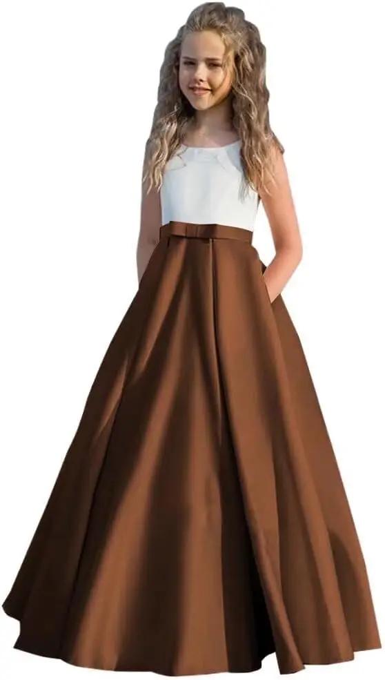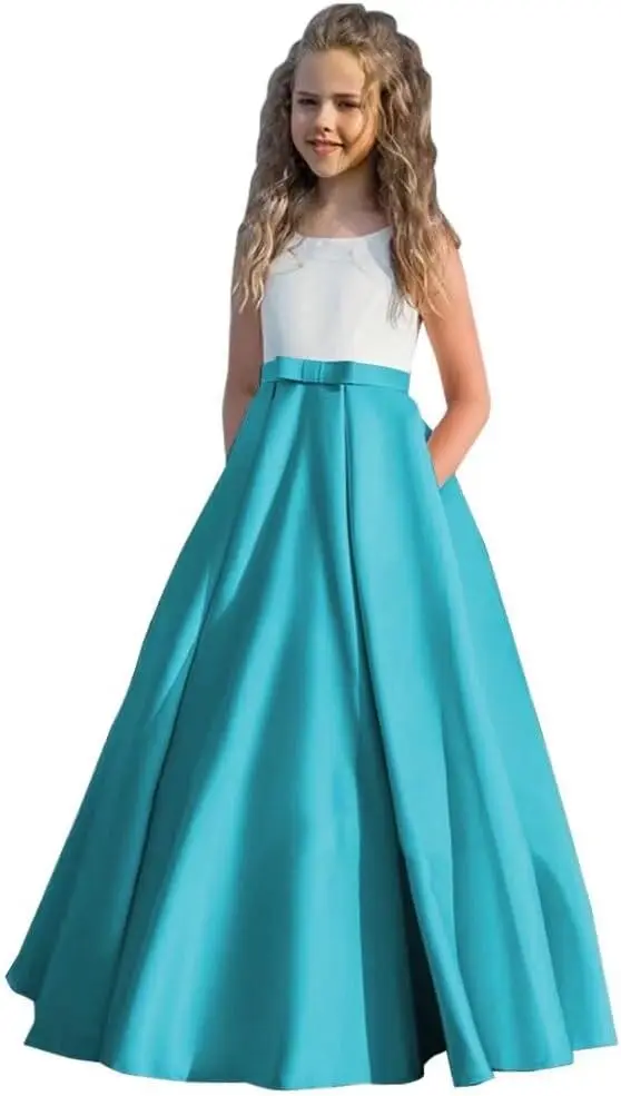 Satin Blumenmädchen Kleid Erstkommunion Kleid Kinder Hochzeit Ballkleider Prinzessin Party Mädchen Kinder Festzug Kleider