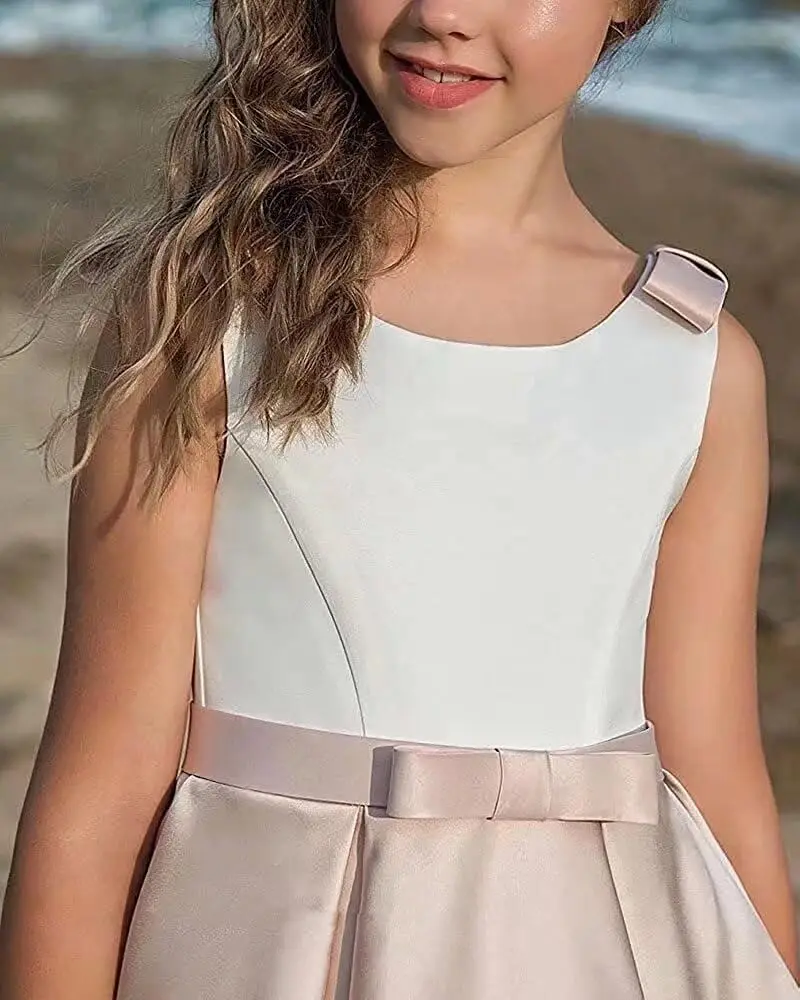 Satin Blumenmädchenkleid Erstkommunionkleid Kinder Hochzeit Ballkleider Prinzessin Party Mädchen Festzugskleider für Mädchen