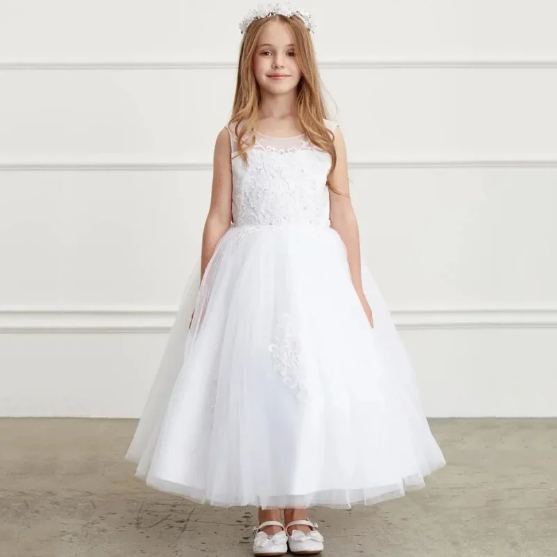 Himmelblaues Flory-Muster mit ärmellosem Band für Hochzeit, Geburtstag, Party, Bankett, Prinzessinnenkleider, individuelle Blumenmädchenkleider