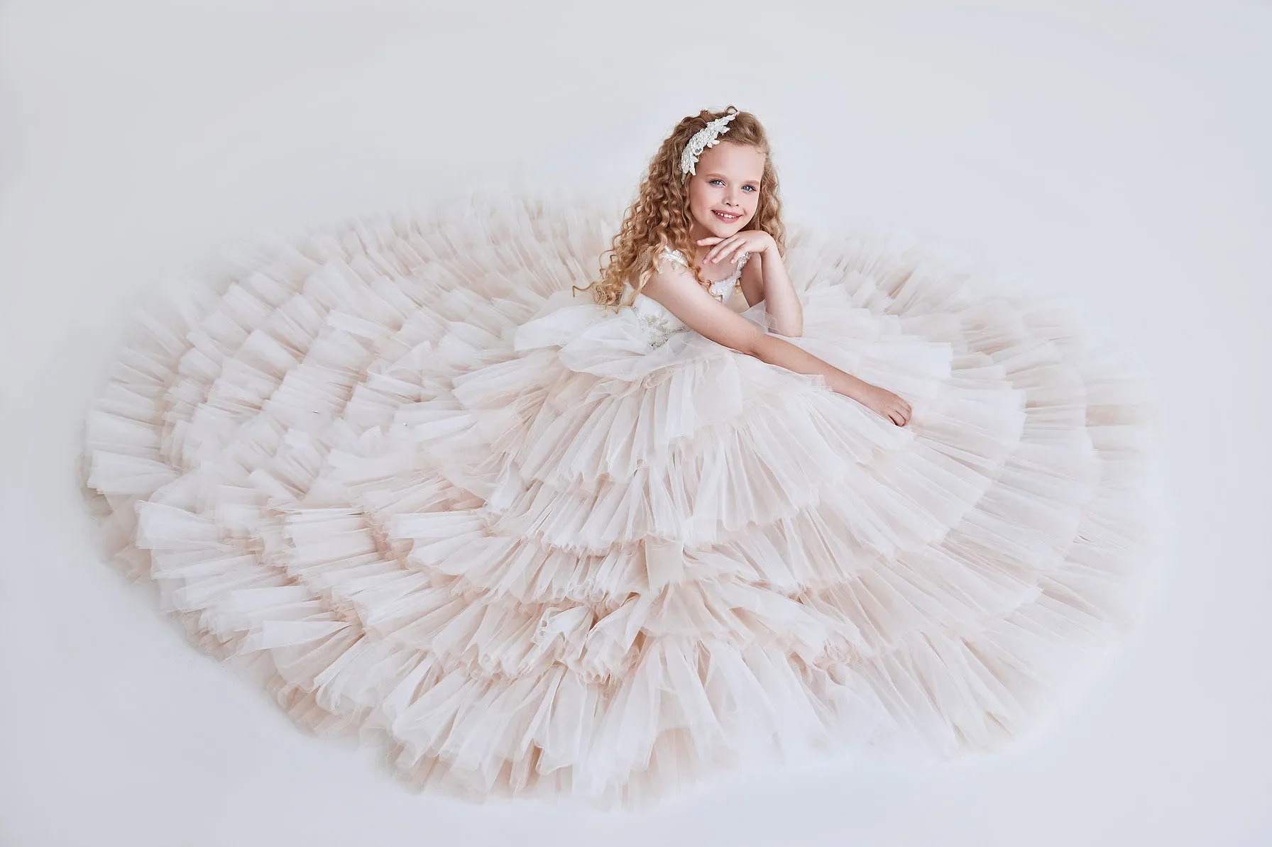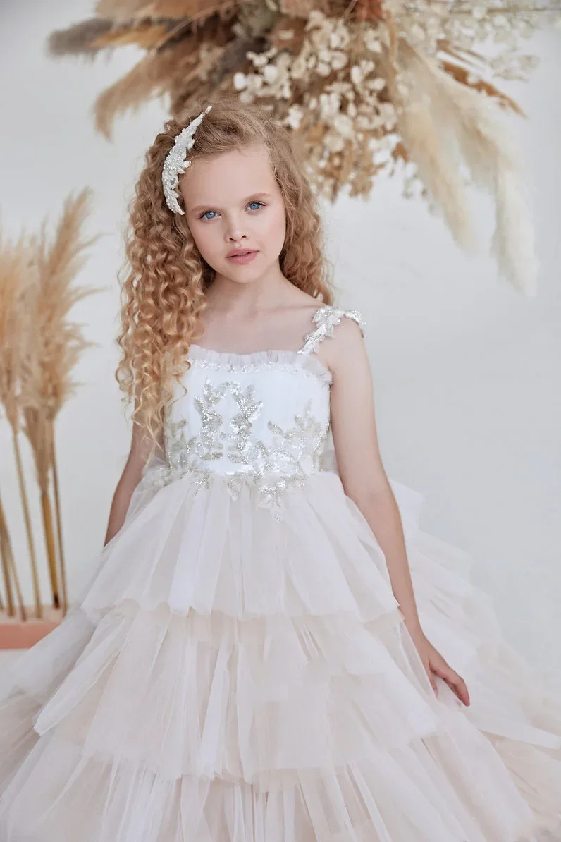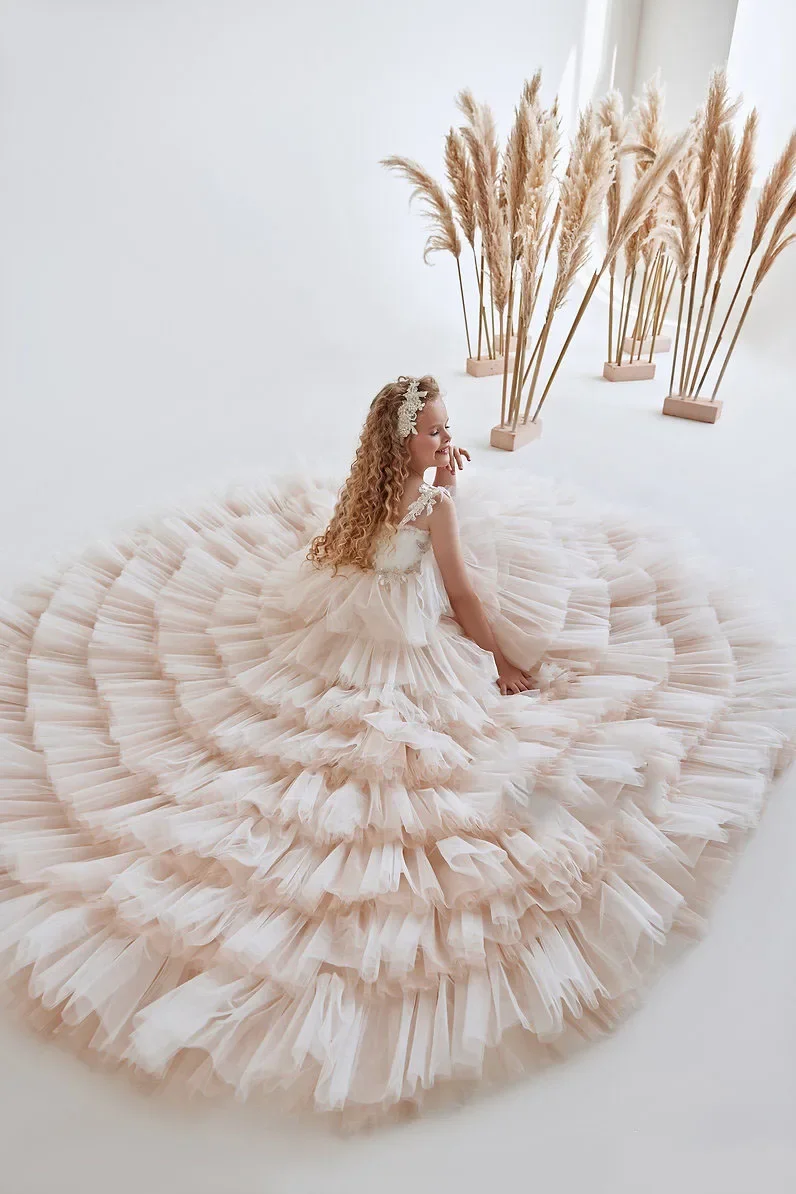 Ärmelloses, gestuftes, elegantes Mädchen-Kindergeburtstagskleid, Erstkommunionkleid, errötendes Rosa, Blumenmädchenkleid für Hochzeit, Pailletten