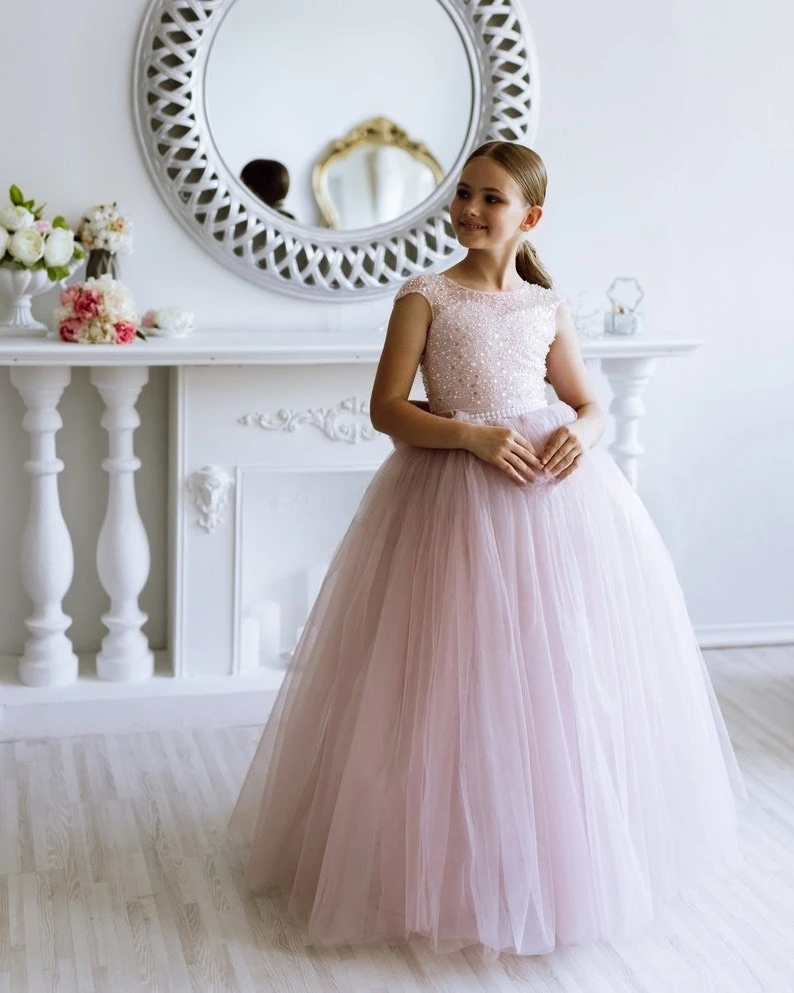 Der Tüllrock ist bauschig und weich. Für den Komfort Ihres Mädchens ist er gefüttert. Die Taille ist mit einem wunderschönen Perlengürtel verziert.