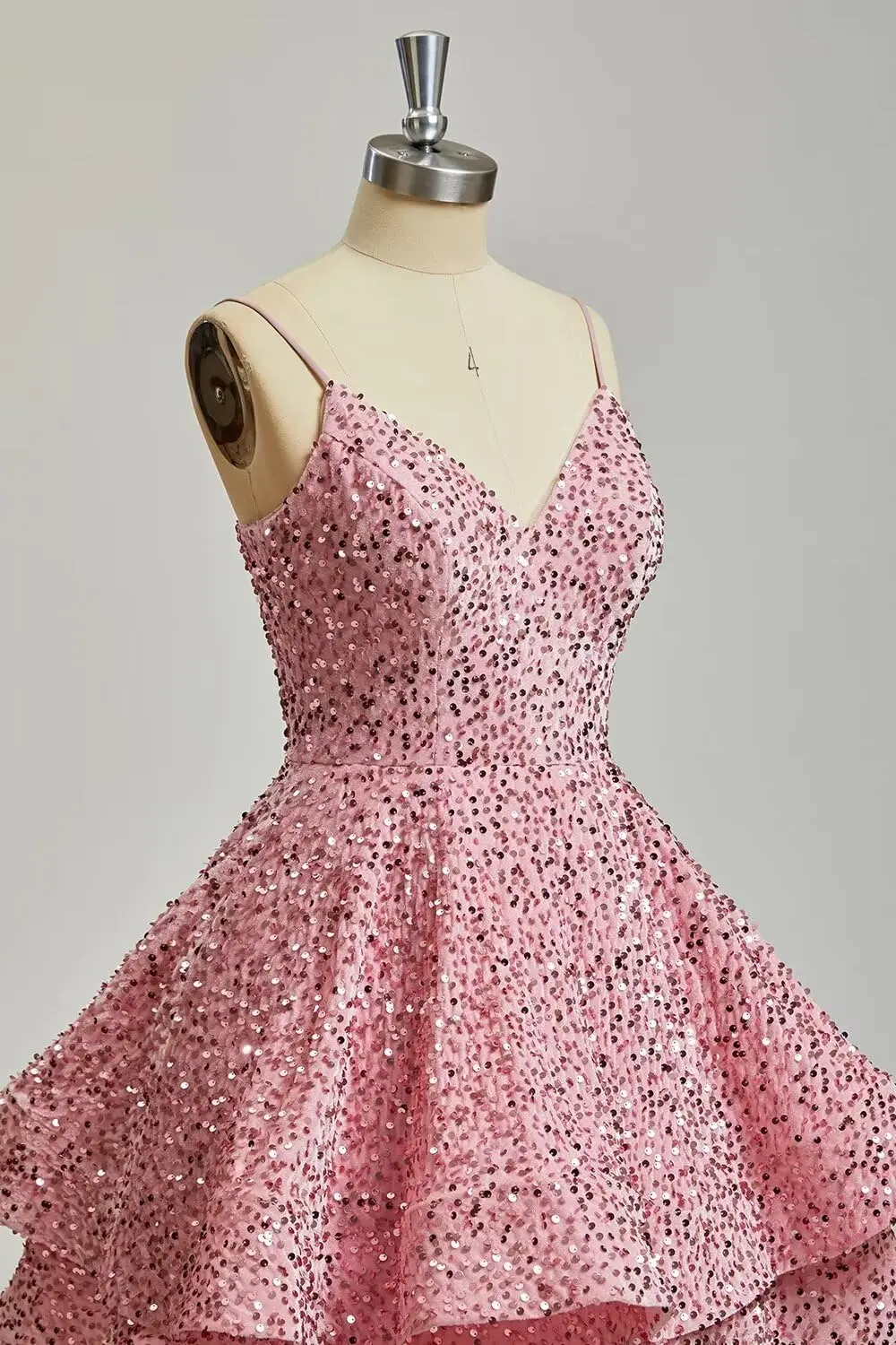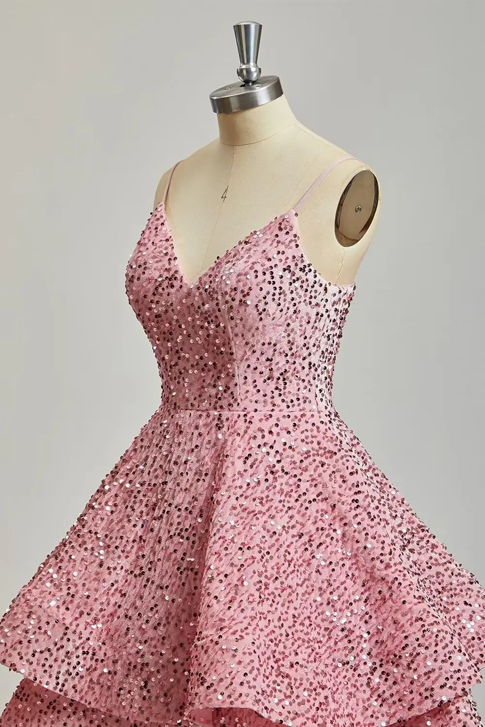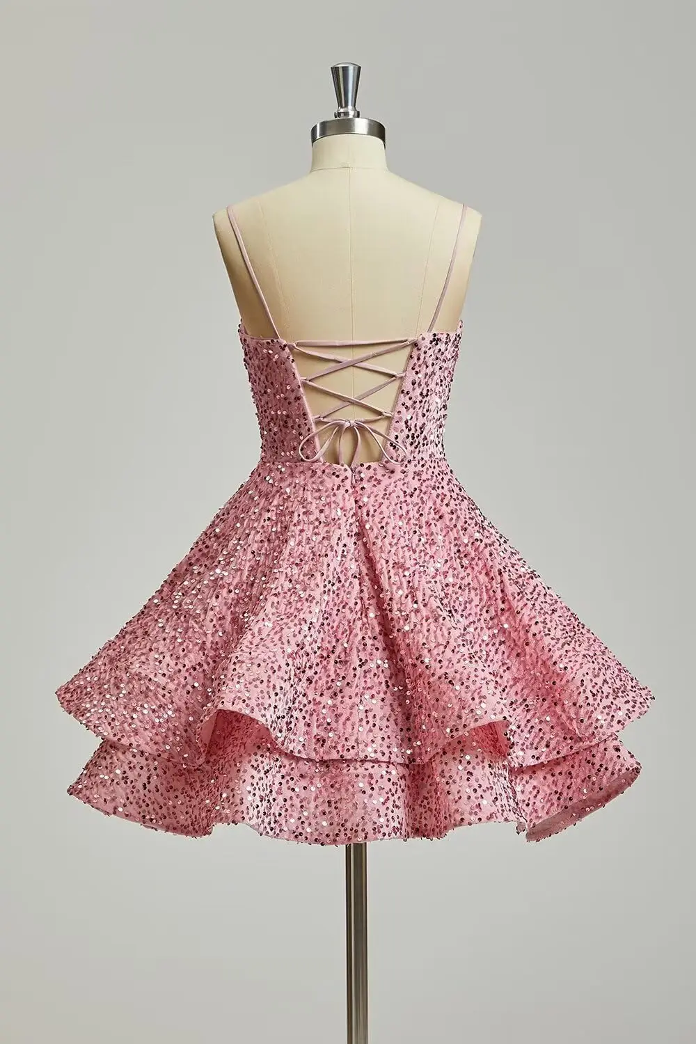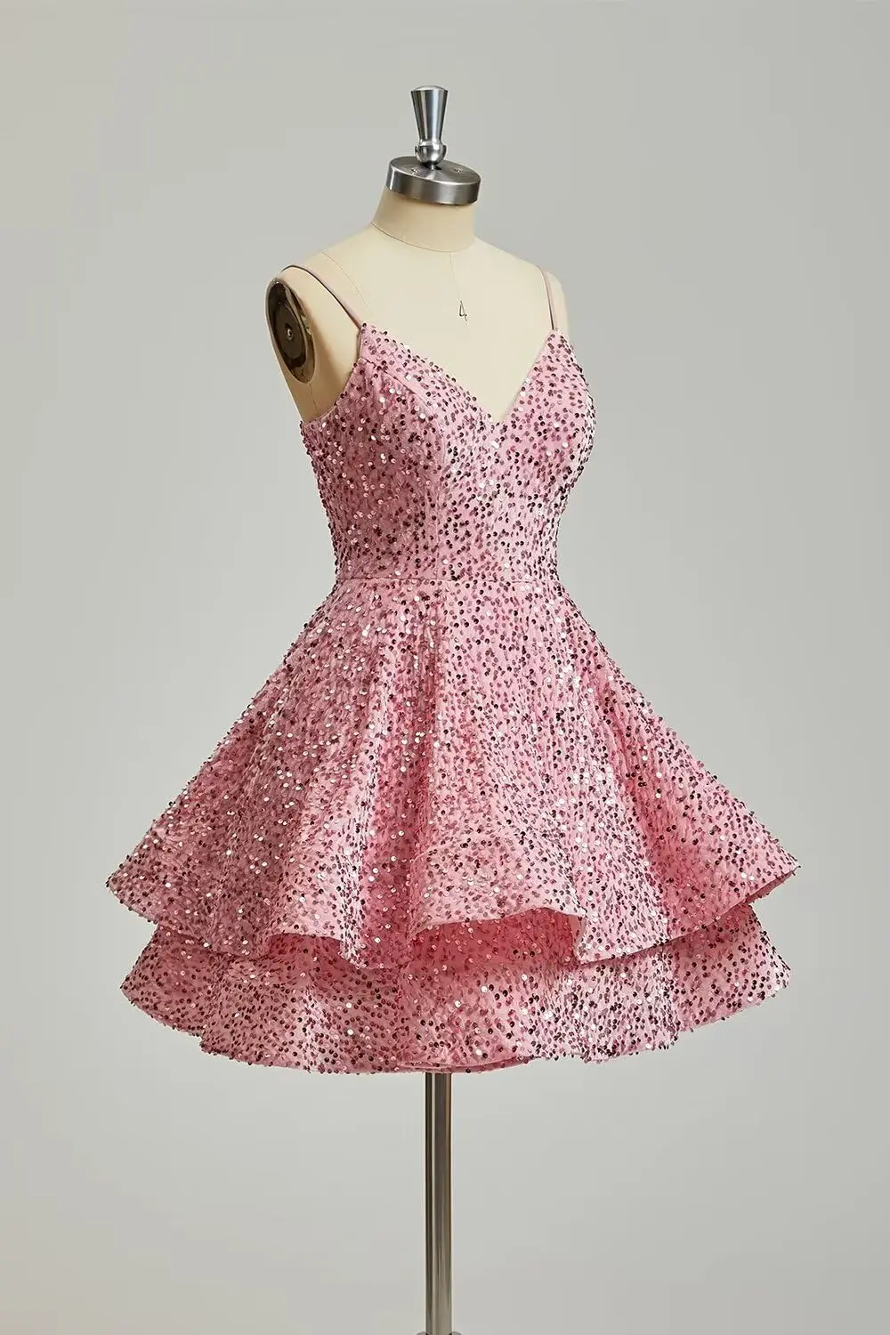Glitzernde Pailletten-Heimkehrkleider für Teenager 2025, kurzer V-Ausschnitt, A-Linie, gestuftes Mini-Abschlussball-Cocktailkleid über dem Knie, Clubkleid