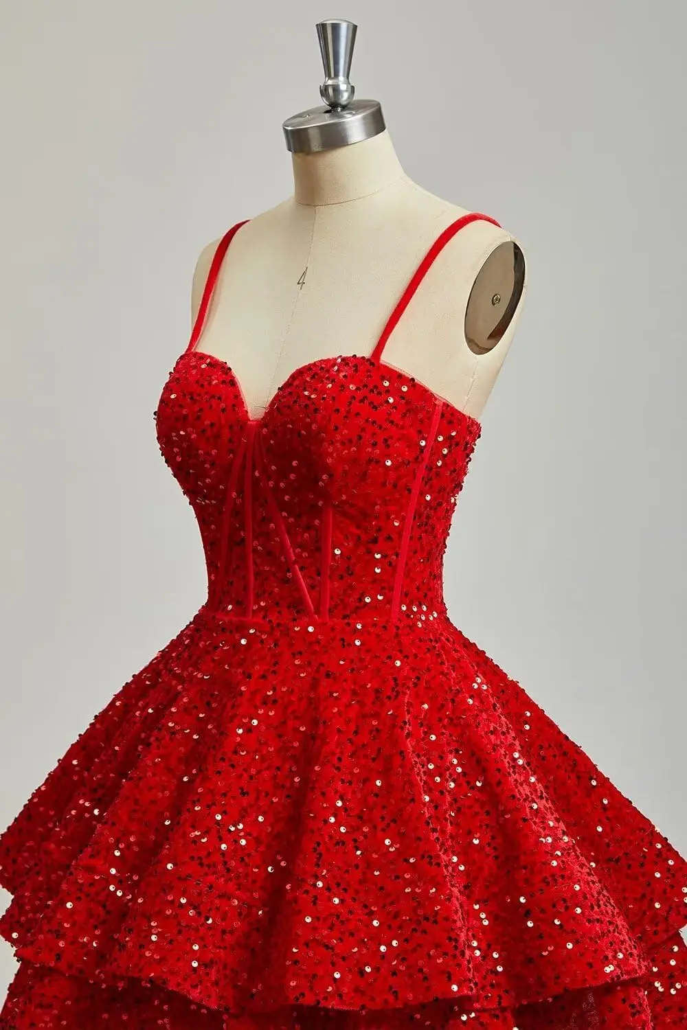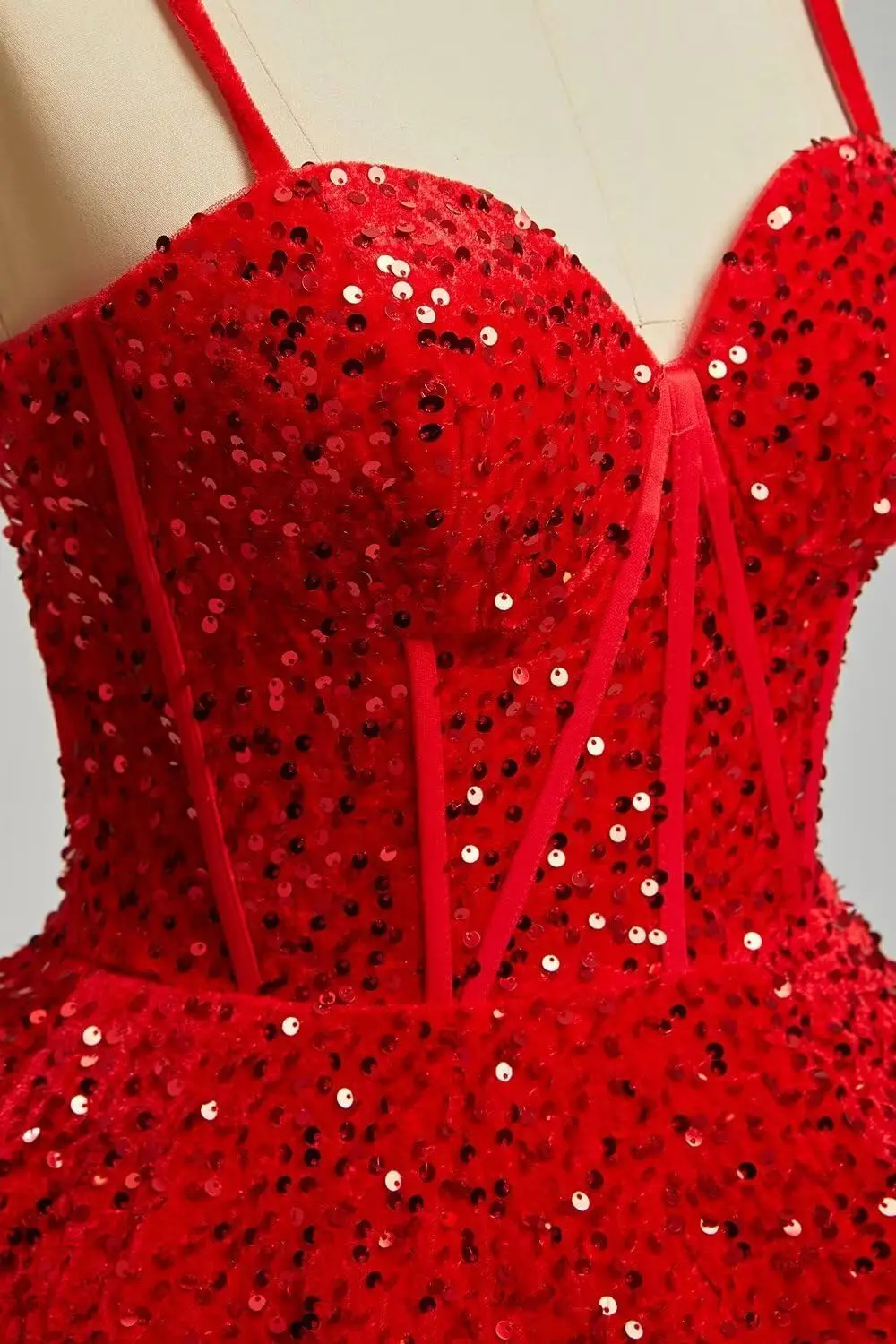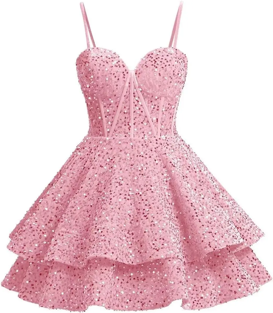 Teenager Glitzernde Pailletten Homecoming Kleider Spaghettiträger Korsett Glitzernd Stufen Abschlussball Party Cocktailkleid