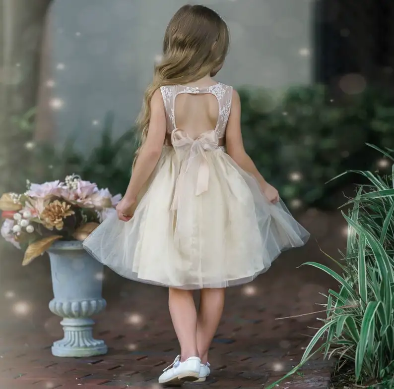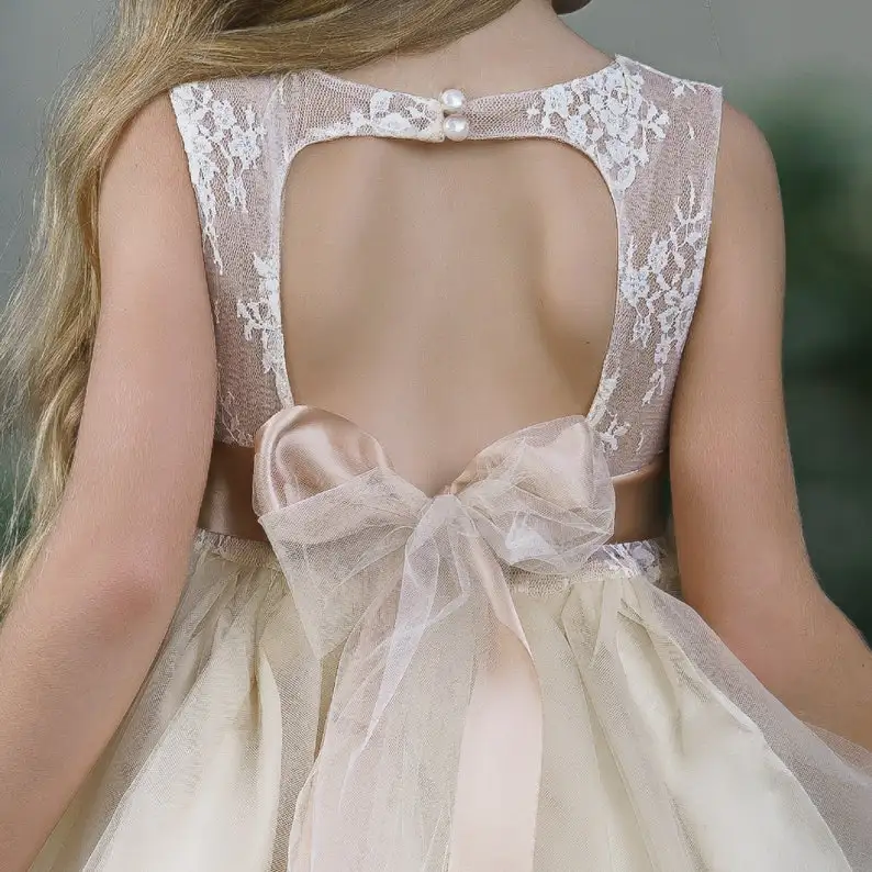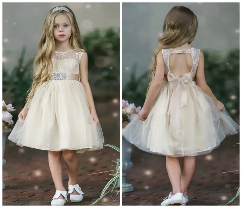 Kleinkinderkleider Spitze Blumenmädchenkleider Tüll rustikales Blumenmädchenkleid Besonderer Anlass Babykleid Champagner Blumenmädchenkleid