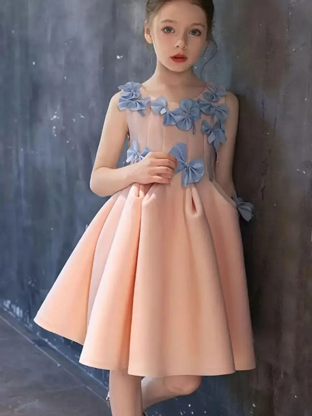 Mit Schleifen Satin Knielang Mädchen Kinder Geburtstagsfeier Erstkommunion Kleider Elegante Blumenmädchenkleider für Hochzeit