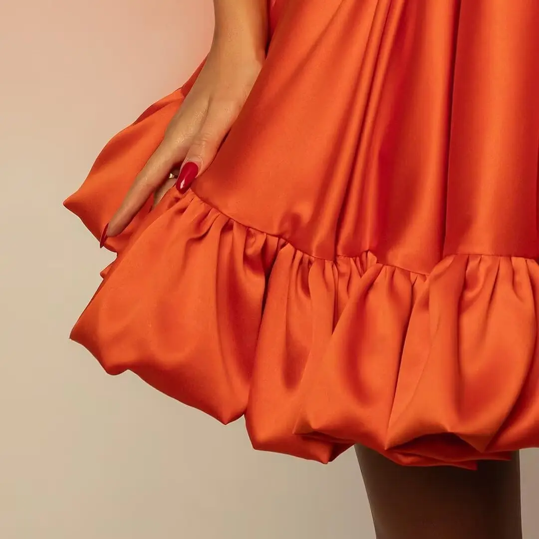 Damen A-Linie Puffärmel Ärmellos Formelles Partykleid Teenager Satin Kurzes Homecoming Cocktailkleid