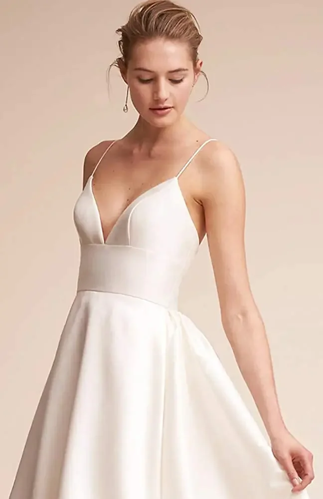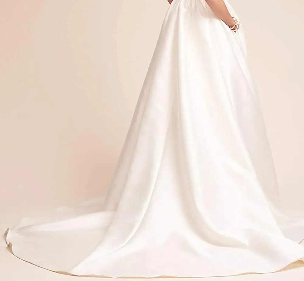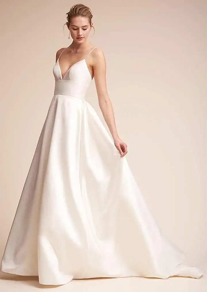Damen Träger Rückenfrei Lange Kleider Satin Ärmellos Schleppe Homecoming Ball Abend Party Kleider mit Taschen Brautkleid