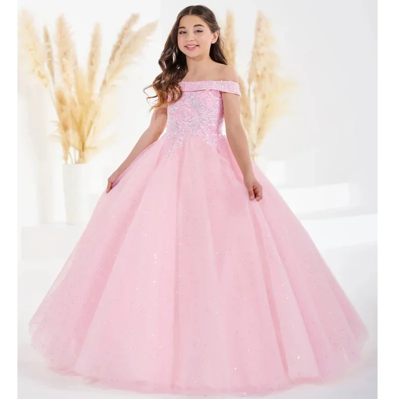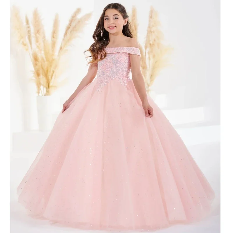 Vestidos de fiesta de cumpleaños, banquete, comunión, niña de las flores, tul rosa claro, apliques de lentejuelas, sin mangas, para boda