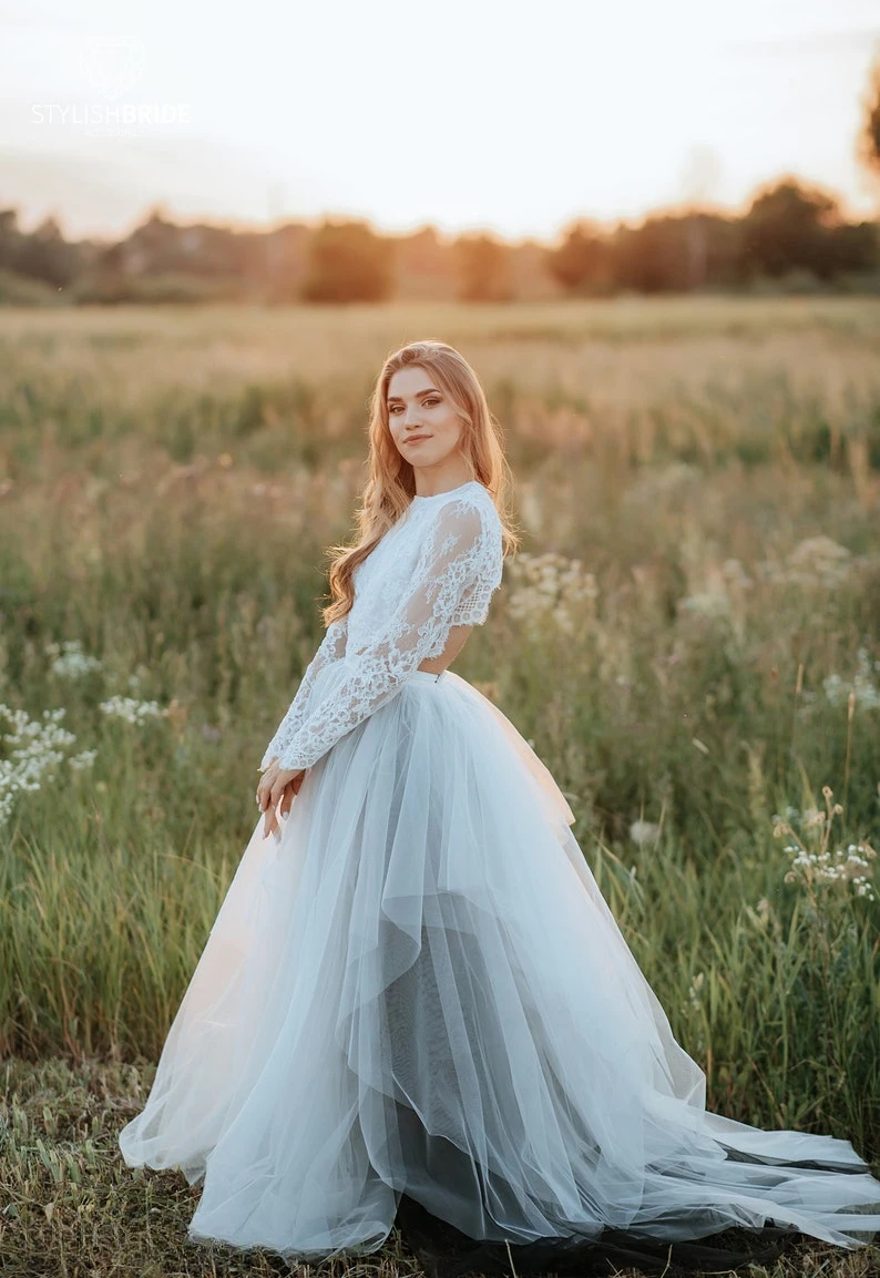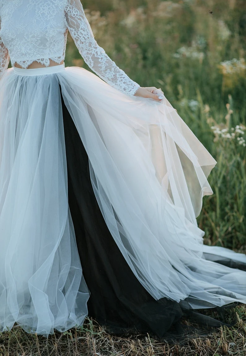 Falda ombré mágica en blanco y negro y top bohemio sin espalda Sophia, nuevos conjuntos de novia de Stylishbrideaccs, vestido de novia en blanco y negro