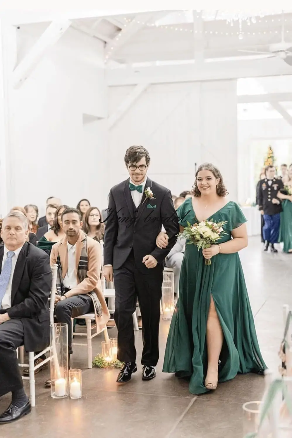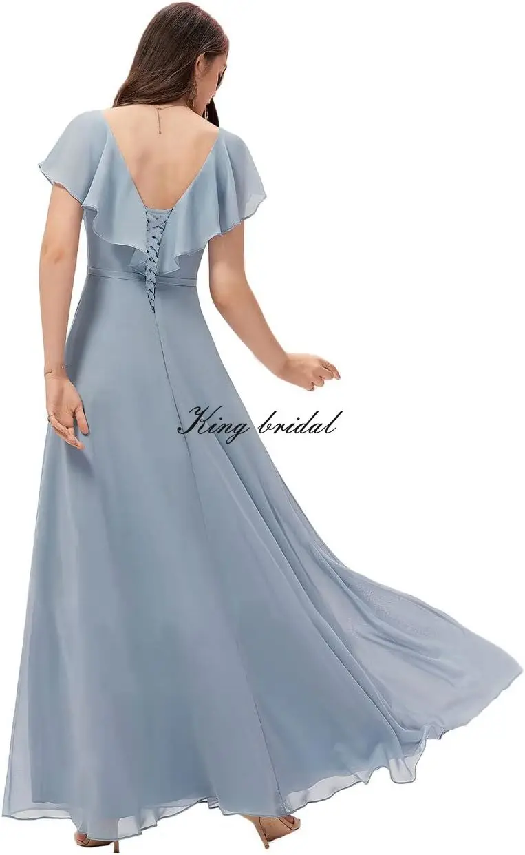 Vestidos de dama de honor largos con escote en V y abertura con volantes de gasa, hechos a medida, sencillos, para mujer, vestidos de noche formales, vestido de fiesta de boda