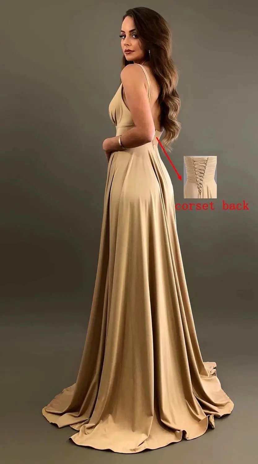 Elegantes vestidos largos de gasa para dama de honor, con escote en V profundo, sin mangas, abertura, vestidos formales de noche para fiesta y graduación.