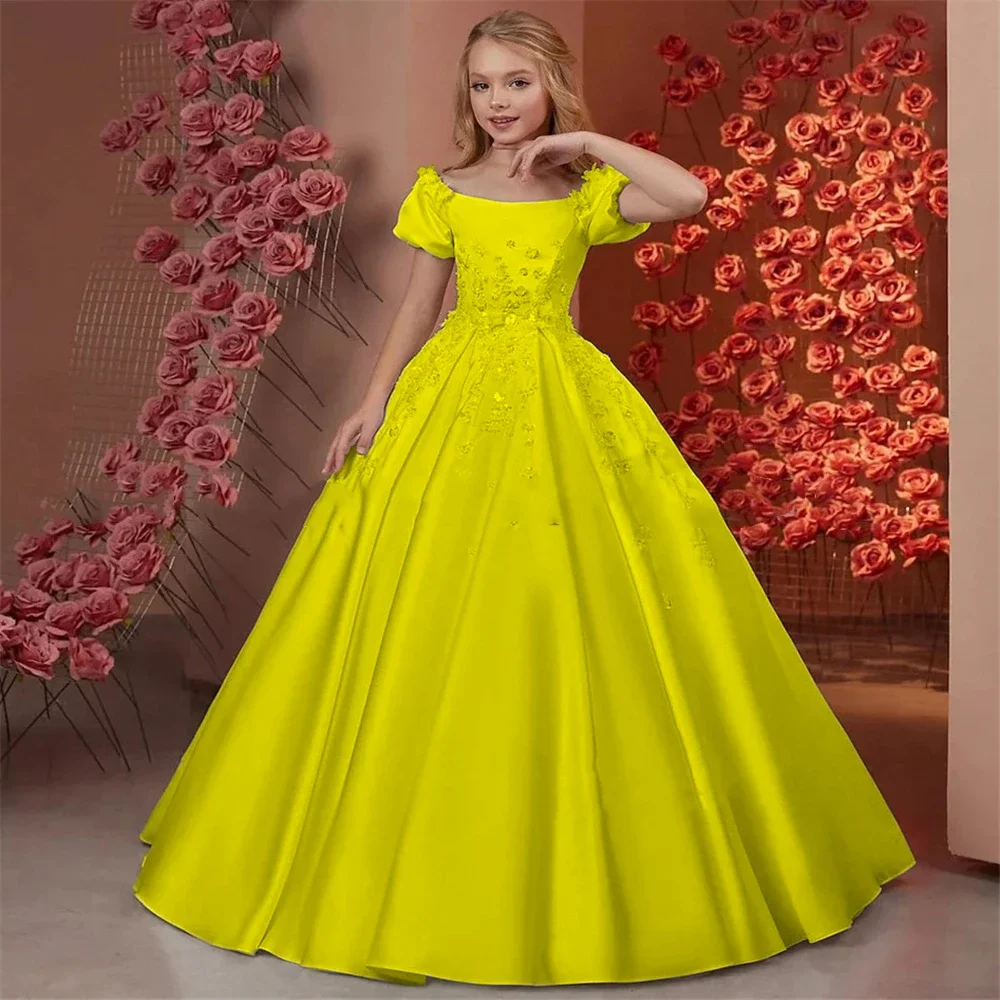 Vestido elegante de primera comunión para niña, largo hasta el suelo, para fiesta de cumpleaños infantil, 2026, para boda, de satén con cuentas y flores.