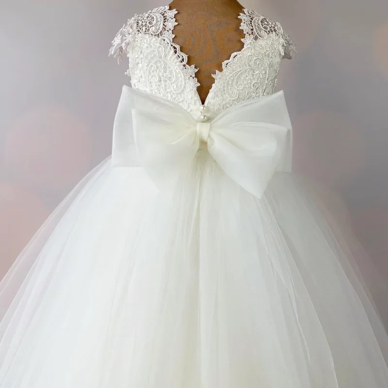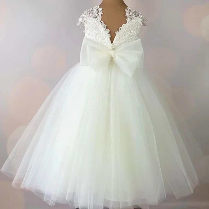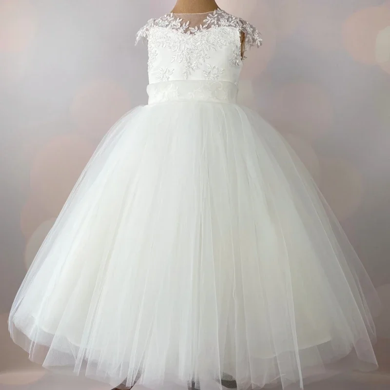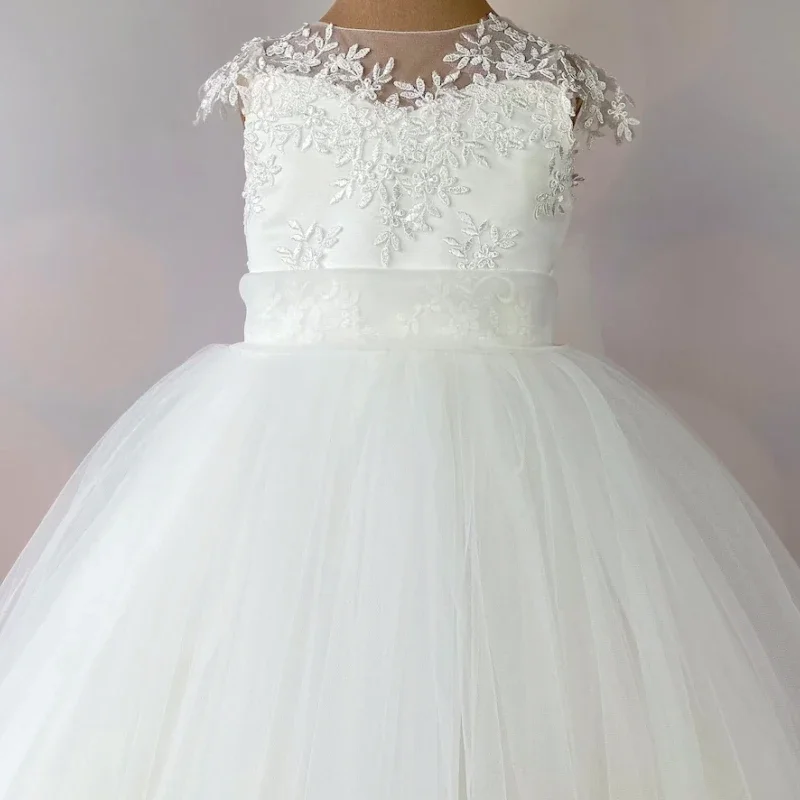 Vestidos de niña de las flores con apliques de tul blanco y lazo, sin mangas, para bodas, cumpleaños, fiestas, primera comunión.