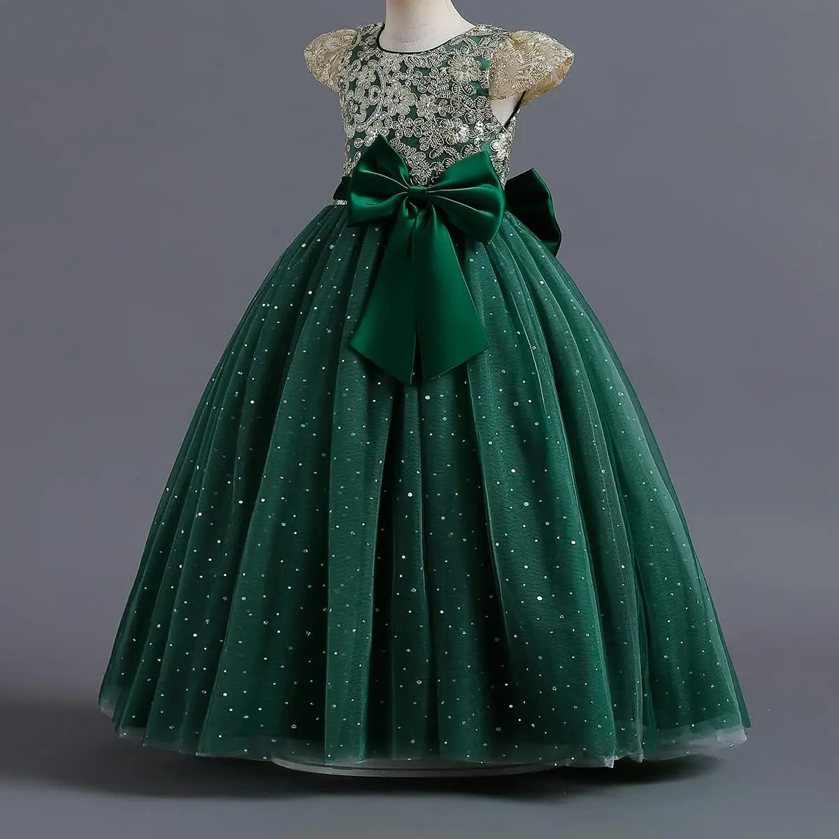 Vestido de niña de las flores, de princesa, de tul abullonado, para dama de honor, boda, comunión, fiesta de cumpleaños, desfile, vestido largo de graduación para niños.