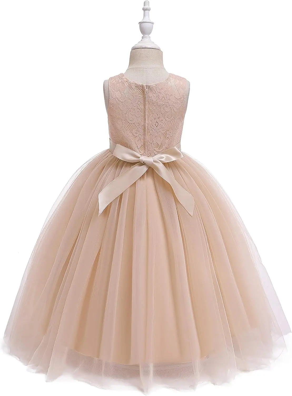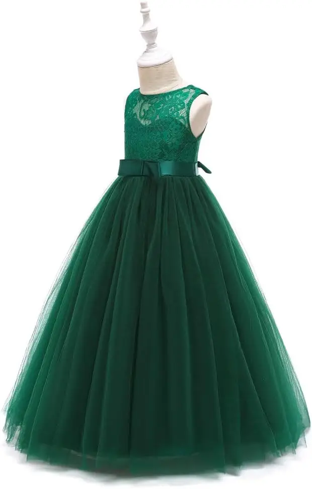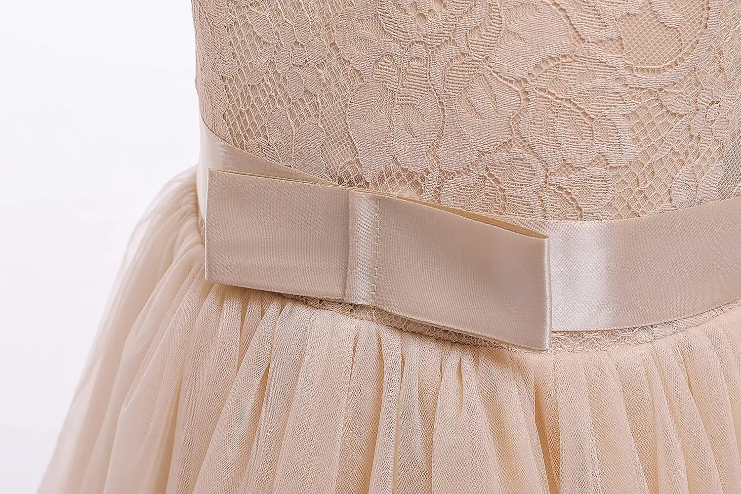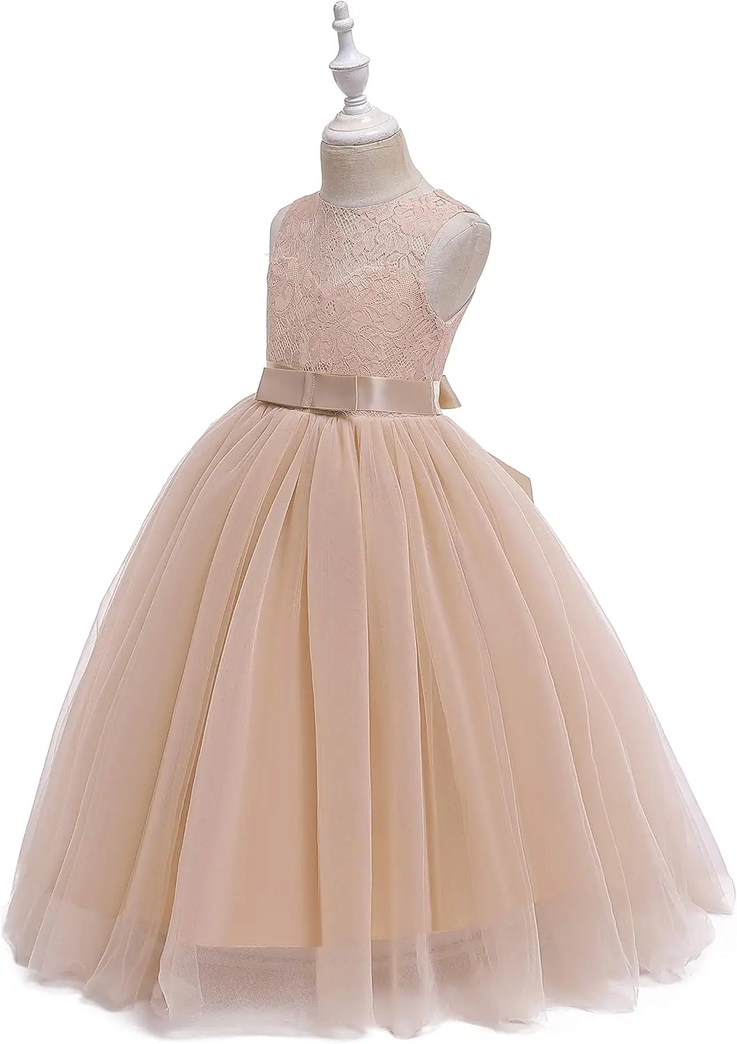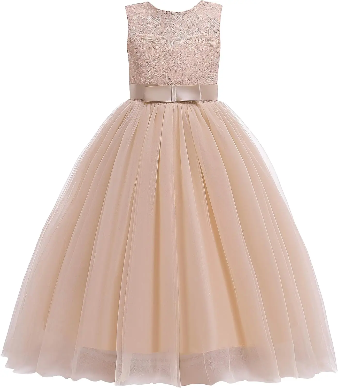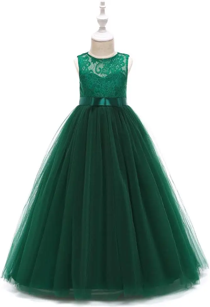 Vestido de dama de honor de encaje para niñas de flores, elegante vestido de princesa de tul largo de línea A, vestido de fiesta de boda para desfile