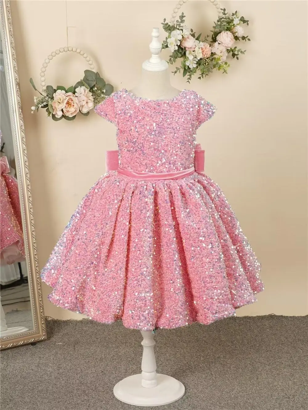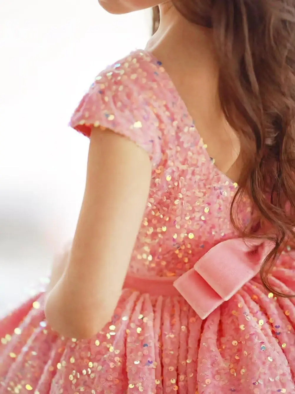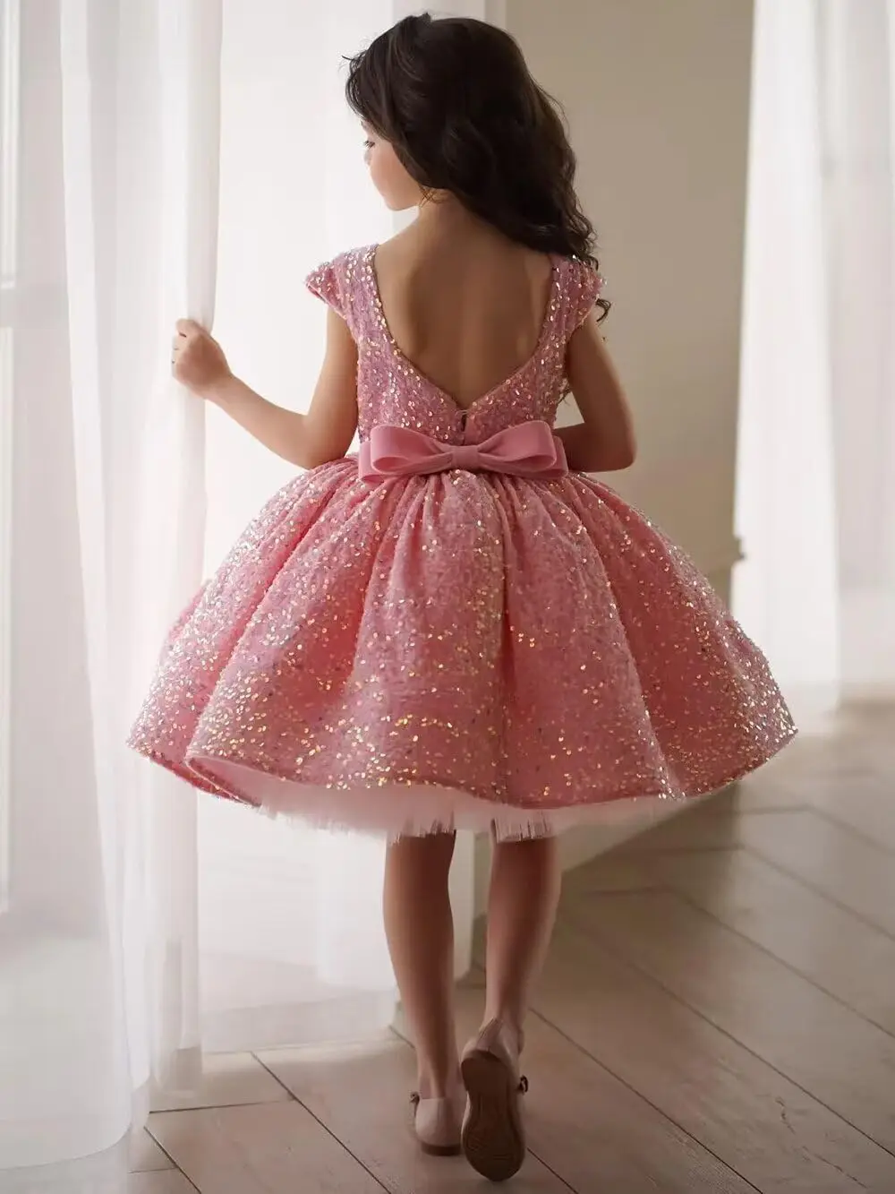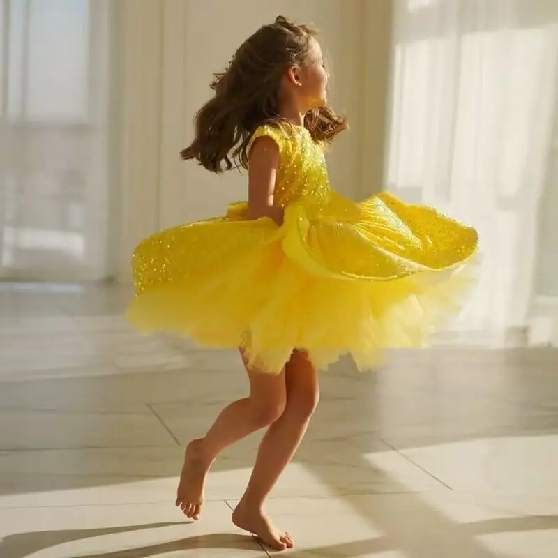 Vestido de desfile para niña, vestido de lentejuelas para niña de flores, tutú corto de tul, vestido de princesa, vestido de desfile para boda, vestido de princesa