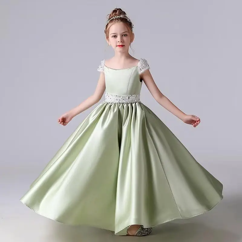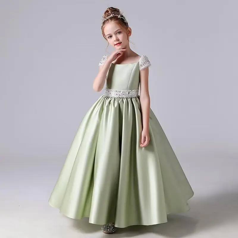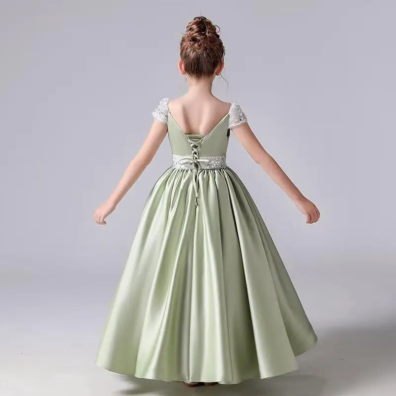Vestidos de desfile para niñas, vestido de satén para niñas de flores, mangas cortas, vestido de baile con lentejuelas, vestido de princesa para fiesta de cumpleaños, vestido de desfile para niñas