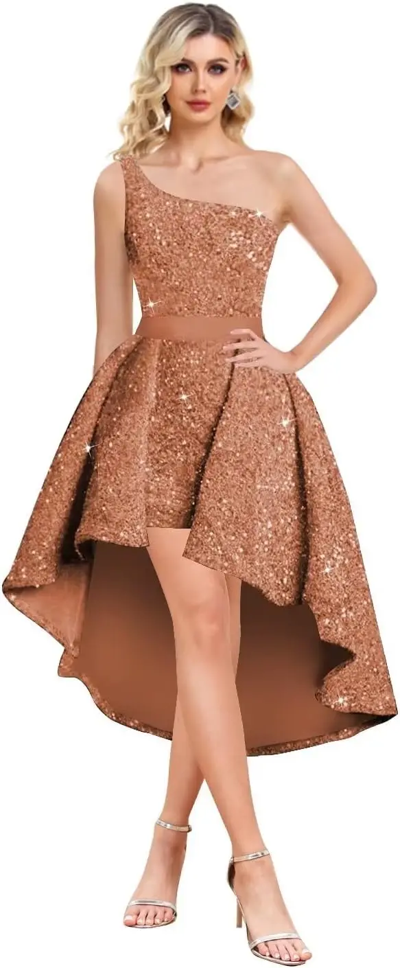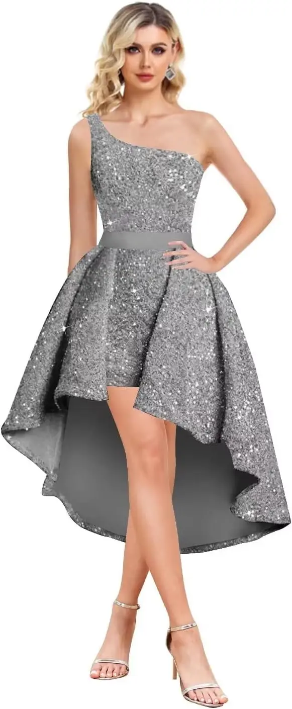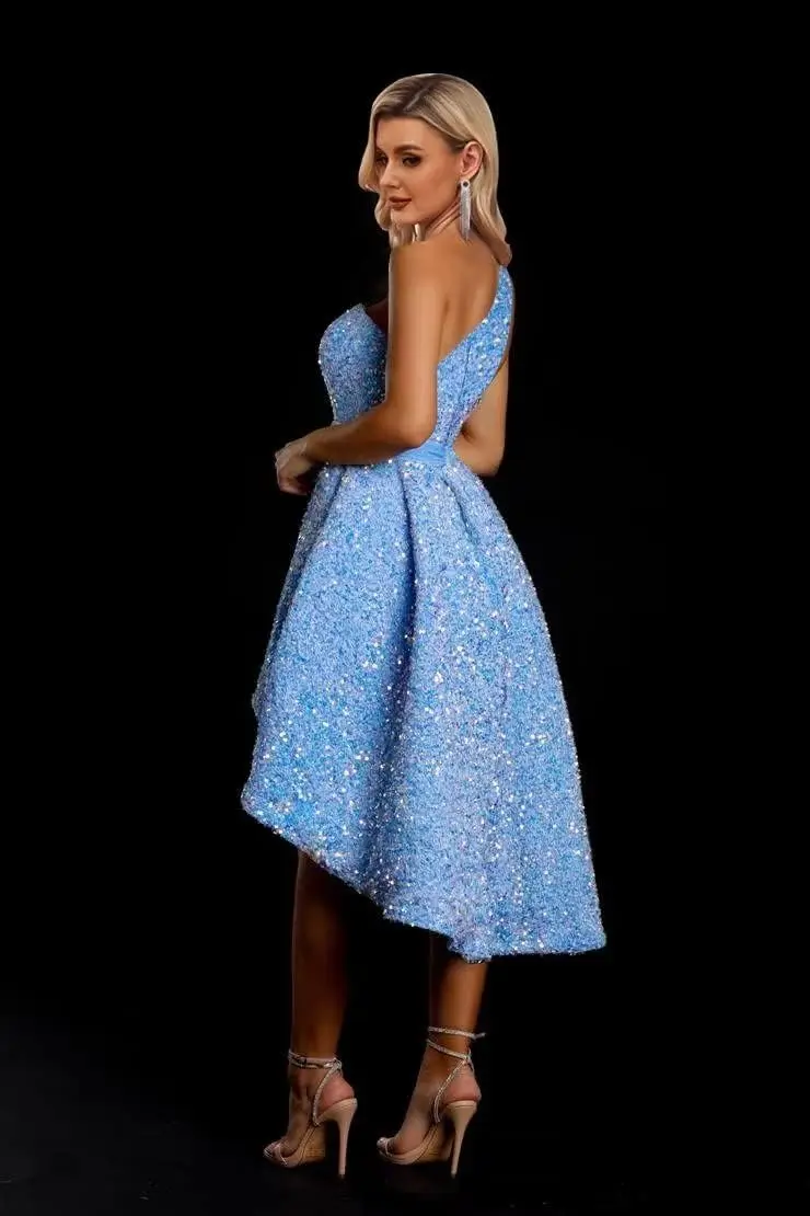 Vestidos de fiesta cortos con lentejuelas y un hombro al aire, de fiesta, brillantes, de cóctel, midi, de graduación