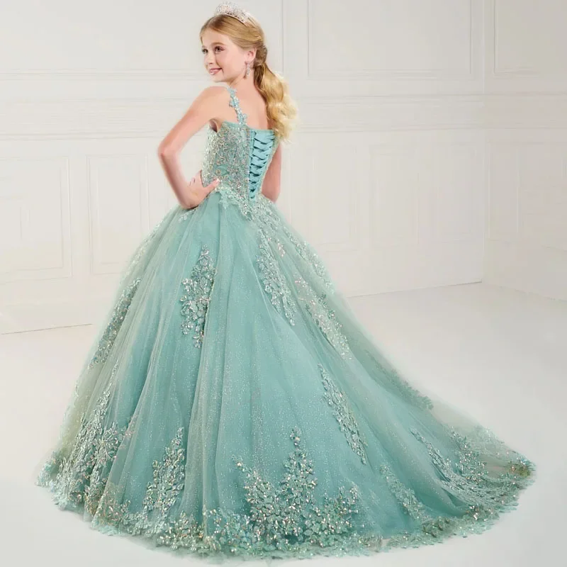 Apliques de flores de tul verde claro sin mangas para bodas, graduaciones, fiestas de cumpleaños, banquetes, vestidos de princesa, vestidos de niña de las flores