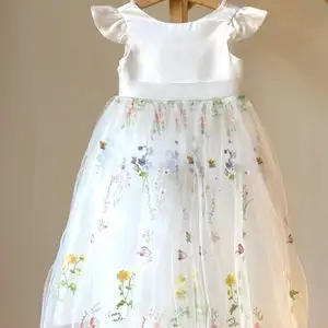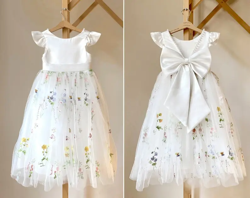 Vestido de niña de flores de satén, encaje, tul, encaje blanco, tul, niña, bebé, satén, encaje, rústico, bohemio, vestidos de comunión, vestido de princesa