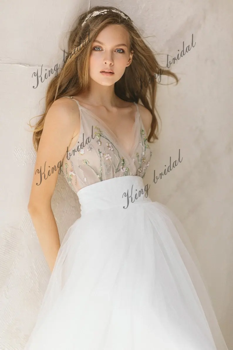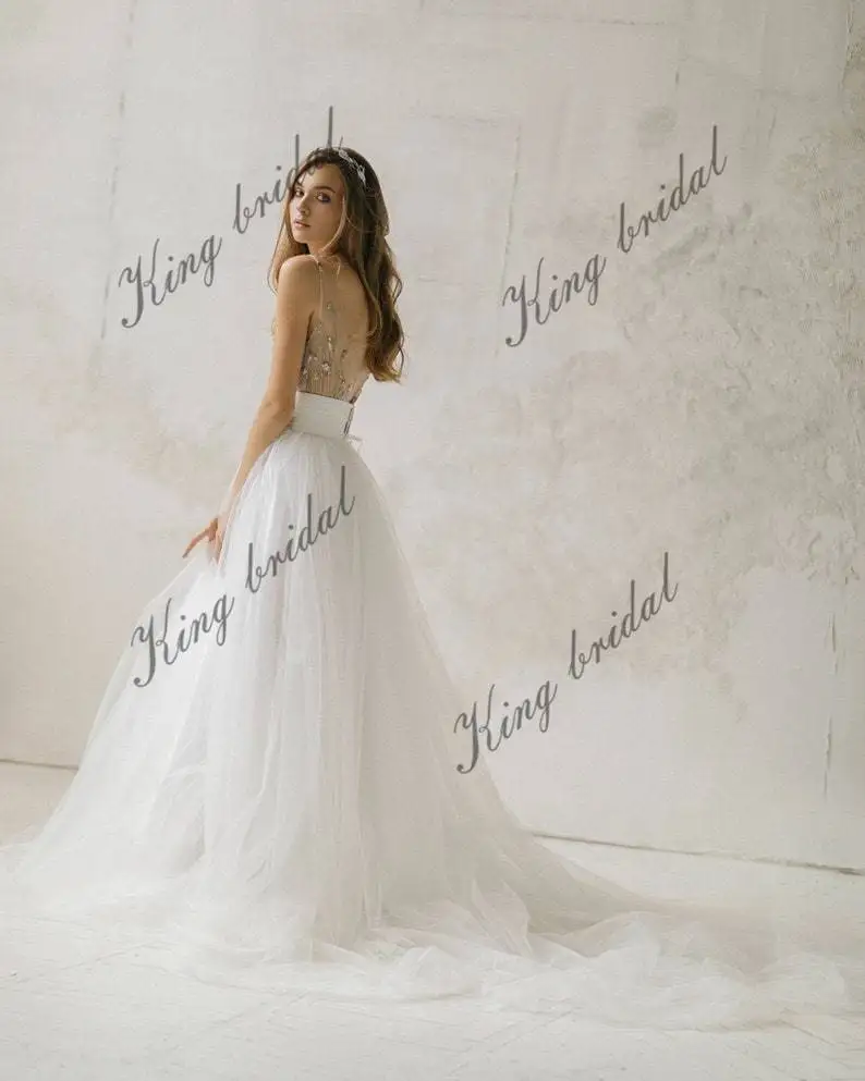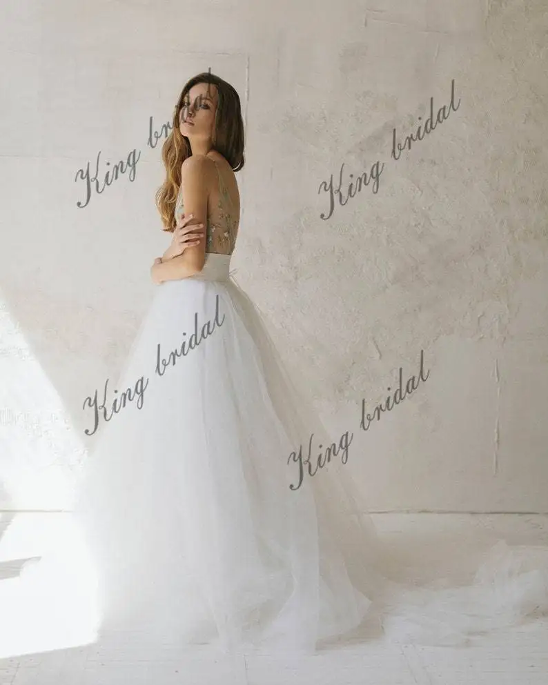 Realza tu look de novia bohemia con nuestra exquisita colección de prendas de novia. Descubre la combinación perfecta de estilo y artesanía con nuestro top beige frío bordado a mano, con un favorecedor escote en V y un delicado drapeado de tul. La espalda bordada transparente añade un toque de elegancia, mientras que los tirantes ajustables garantizan un ajuste cómodo. Completa tu conjunto con nuestra falda de novia amplia en blanco roto, con un cinturón corsé ancho y un impresionante detalle de cordones en la espalda. La larga cola de la falda añade un toque dramático a tu camino al altar. Ya sea que busques un estilo bohemio y de espíritu libre o una estética caprichosa y etérea, nuestras prendas de novia bohemias están diseñadas para hacerte sentir radiante y segura en tu día especial.