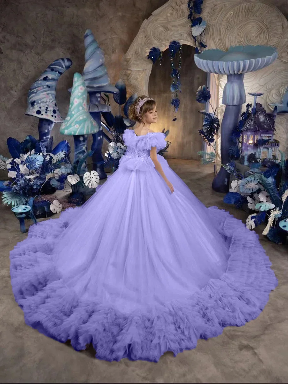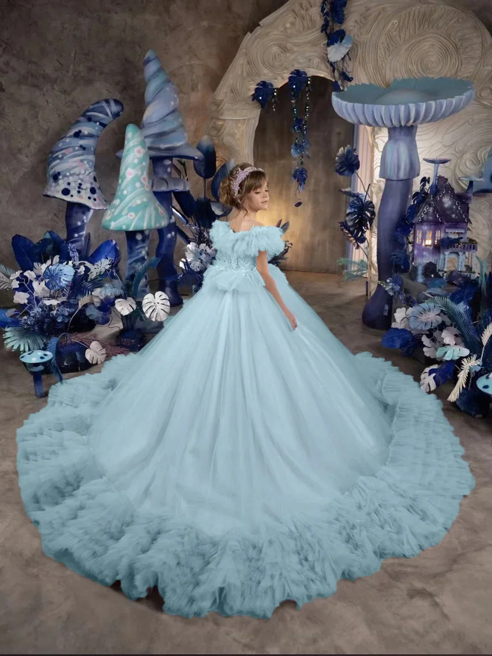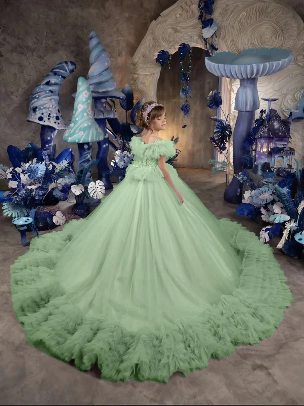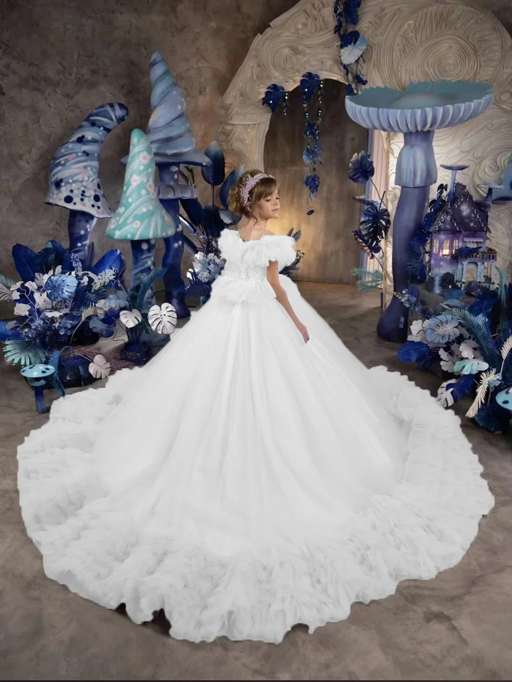 Vestido de novia con volantes hasta el suelo para niña, para cumpleaños, primera comunión, personalizado, de princesa, para niña de las flores